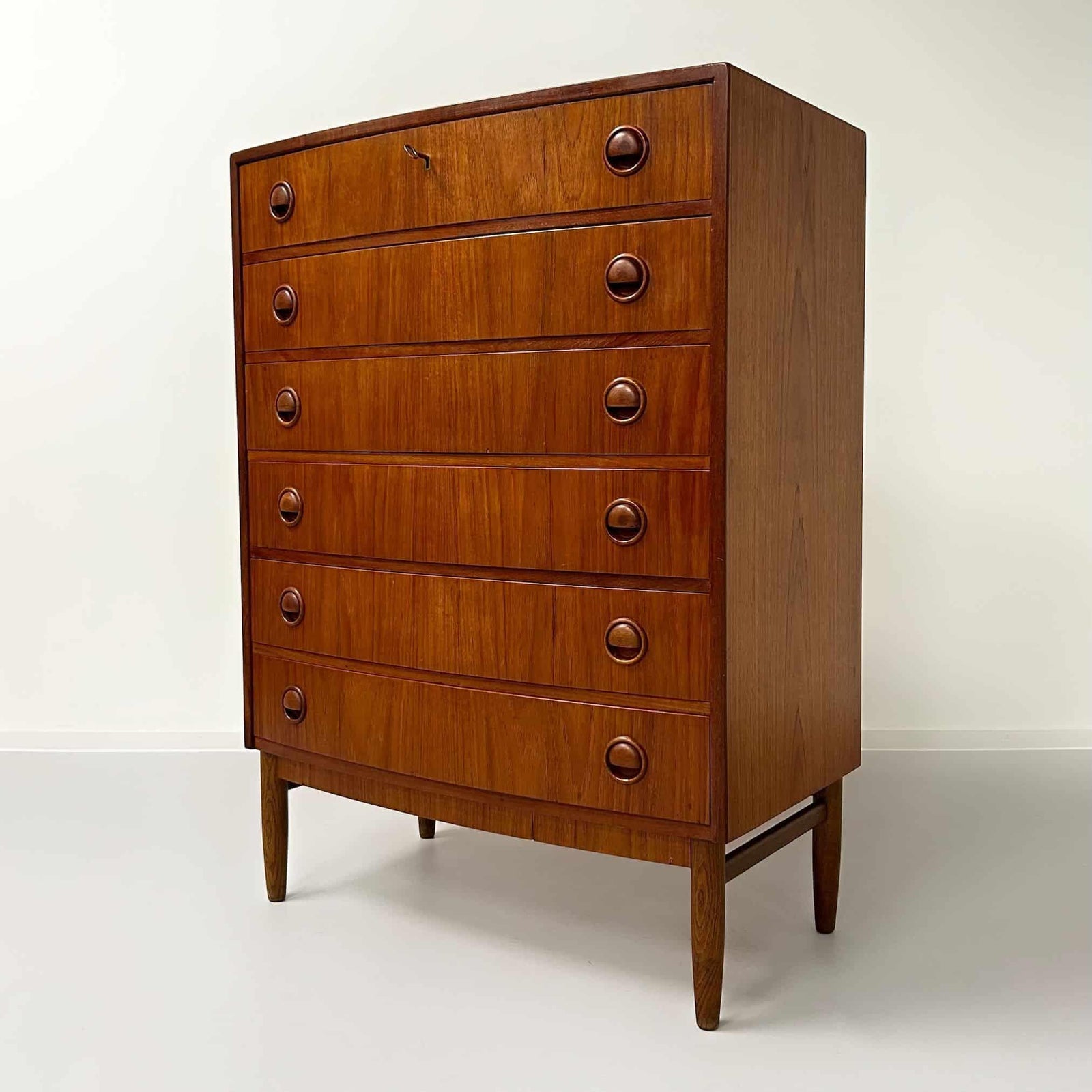 Et tidløst møbel, der fungerer både som praktisk opbevaringsløsning og som et designmæssigt statement i stuen, spisestuen eller entréen. Et bæredygtigt vintagevalg, der repræsenterer dansk designarv og fremstår i flot stand med let patina.