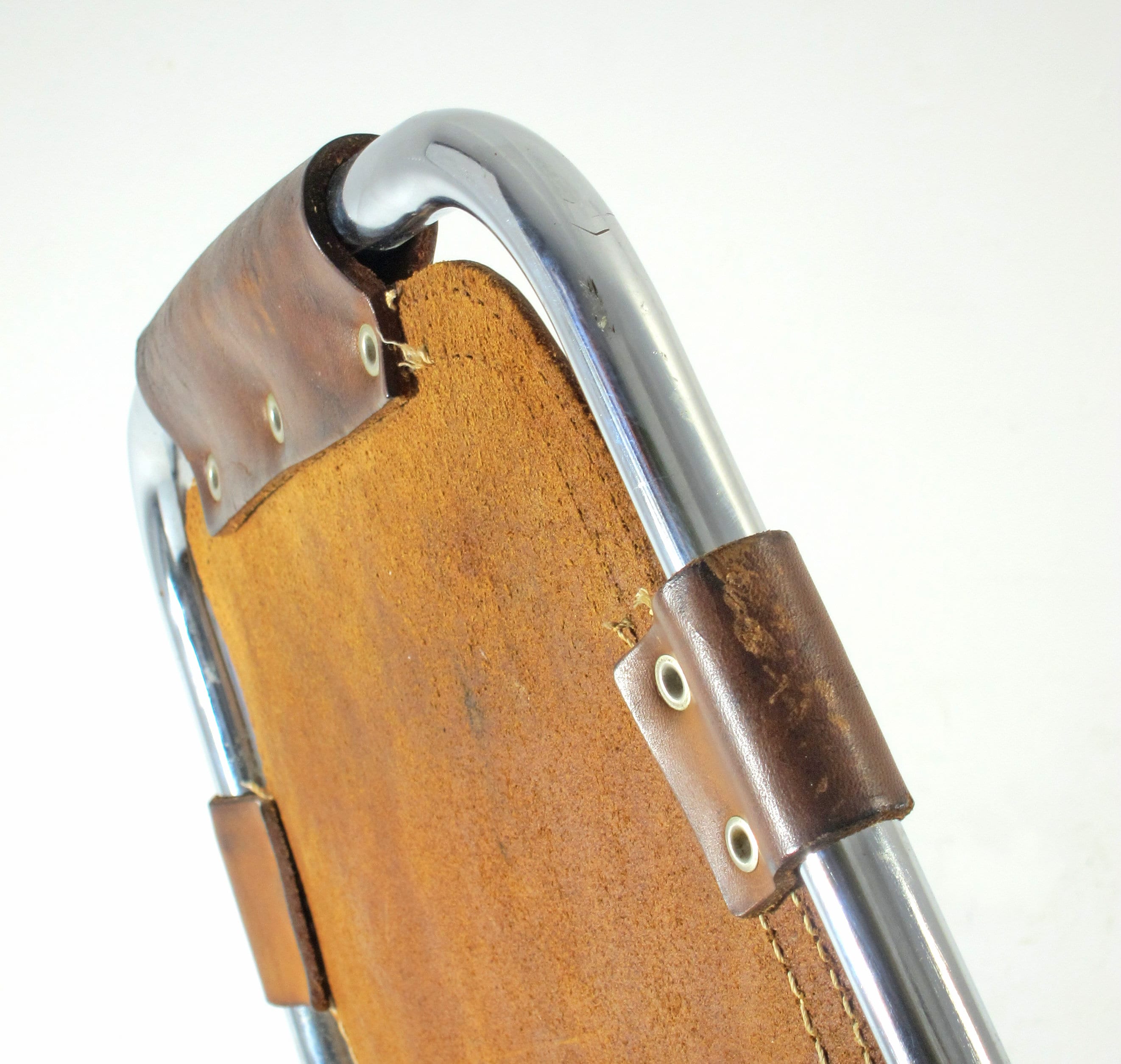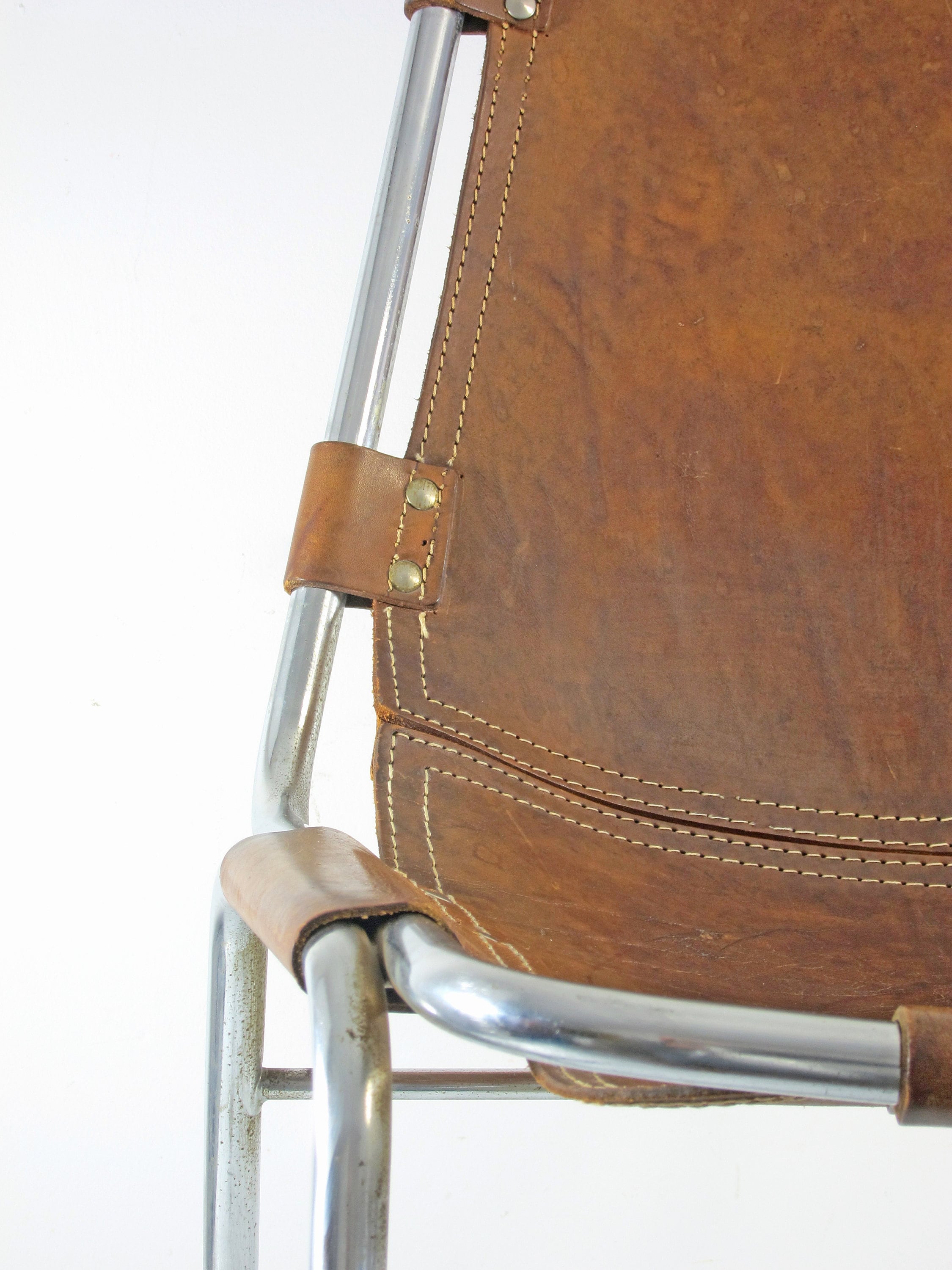 Stolen fremstår i god vintage stand med tydelige brugsspor og mindre tab af syninger, hvilket understreger alder og autenticitet, men uden at kompromittere funktionaliteten. Et karakterfuldt møbel, der fungerer både omkring spisebordet og som markant solitær i indretningen.