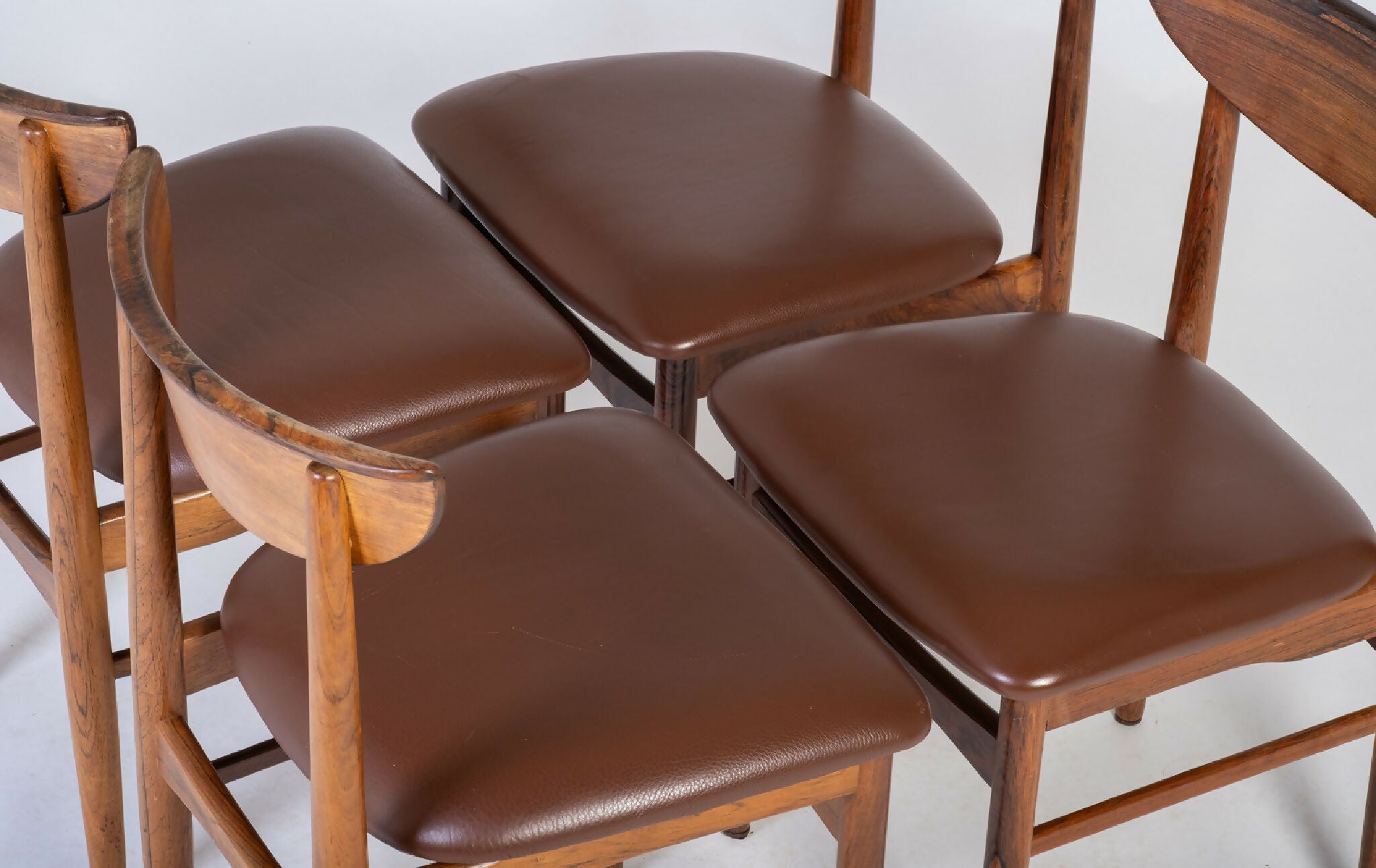 Et tidløst eksempel på dansk design, hvor funktionalitet og æstetik går op i en højere enhed. Stolene fremstår i meget fin original stand med let patina, der vidner om alder og autenticitet.