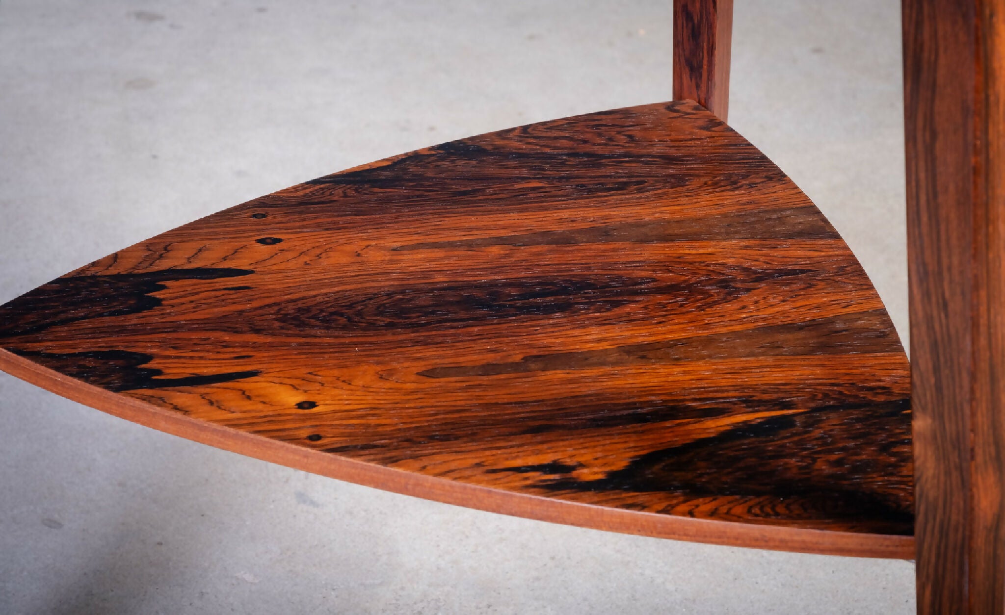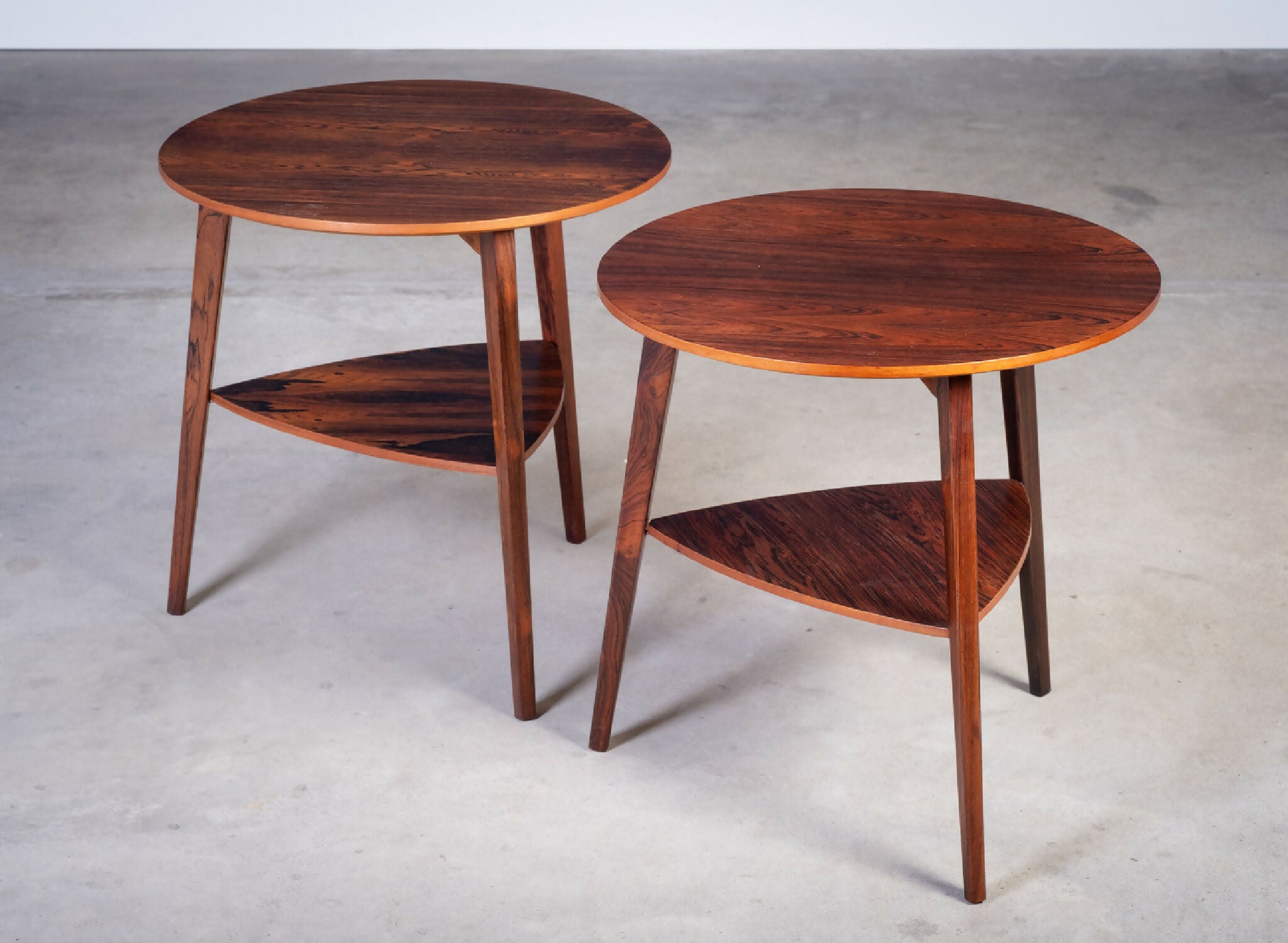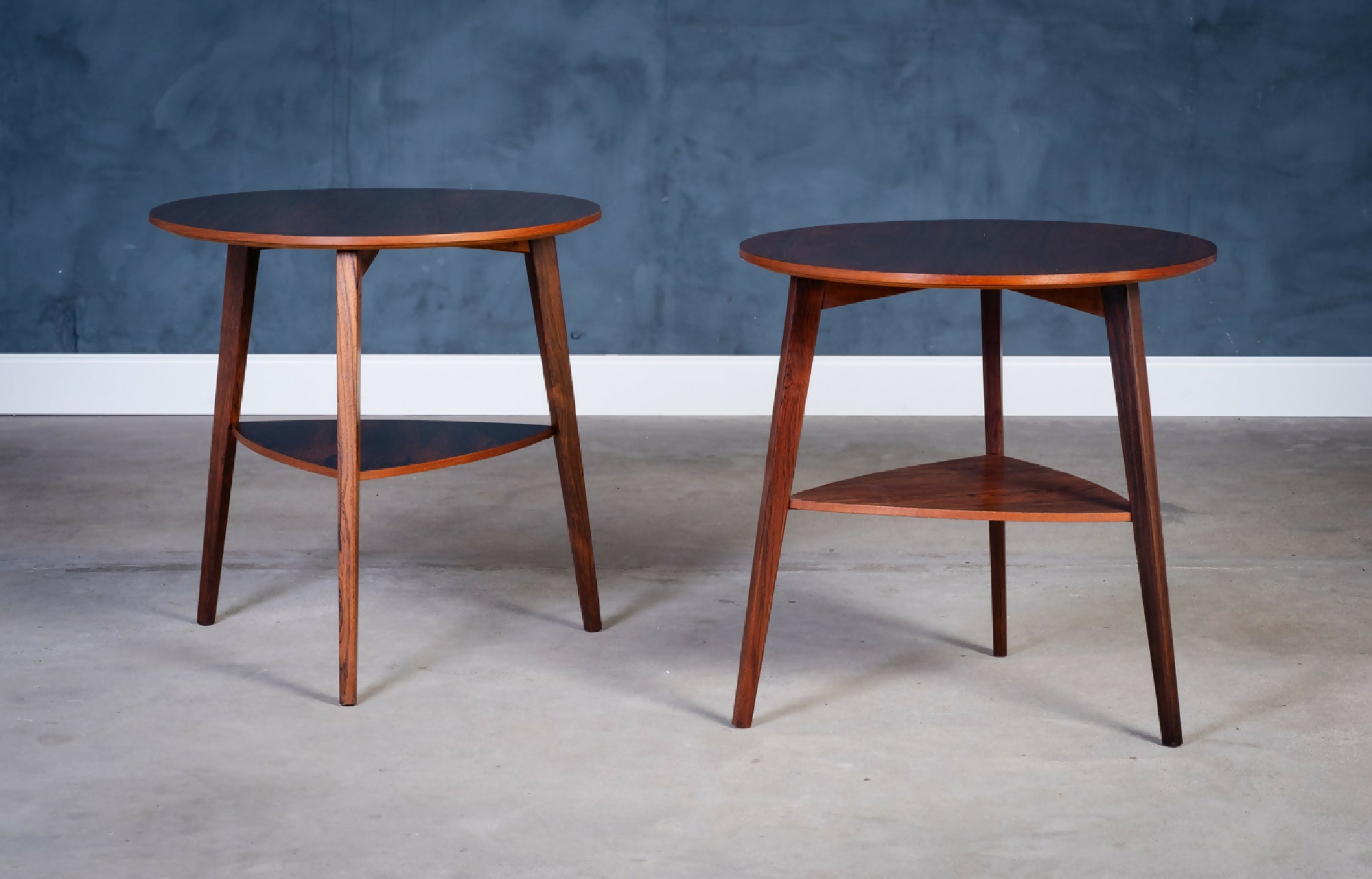 Model sideborde designet af Holger Georg Jensen for Kubus i 1960’erne. Bordene er udført i palisander med smukt åretegnet træværk og en rund, harmonisk form, der afspejler Jensen’s enkle og funktionelle designstil. Det fine håndværk og de rene linjer giver et elegant og tidløst udtryk, som passer perfekt ind i både moderne og klassiske hjem.