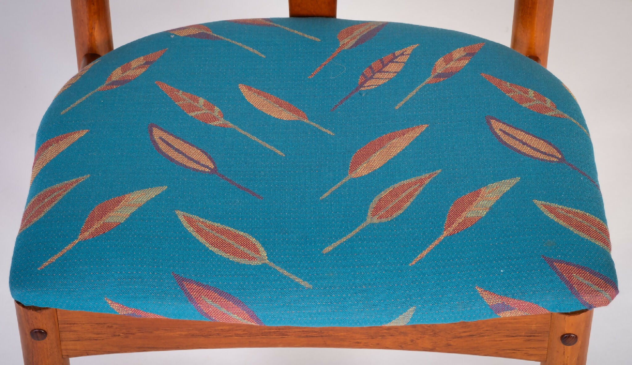 Stolene fremstår i meget fin stand med smuk patina. De kan om ønsket nybetrækkes efter ønske, hvilket giver mulighed for at tilpasse stoffet til indretningen, uden at gå på kompromis med det originale design. Et klassisk og bæredygtigt valg for samlere og designelskere.