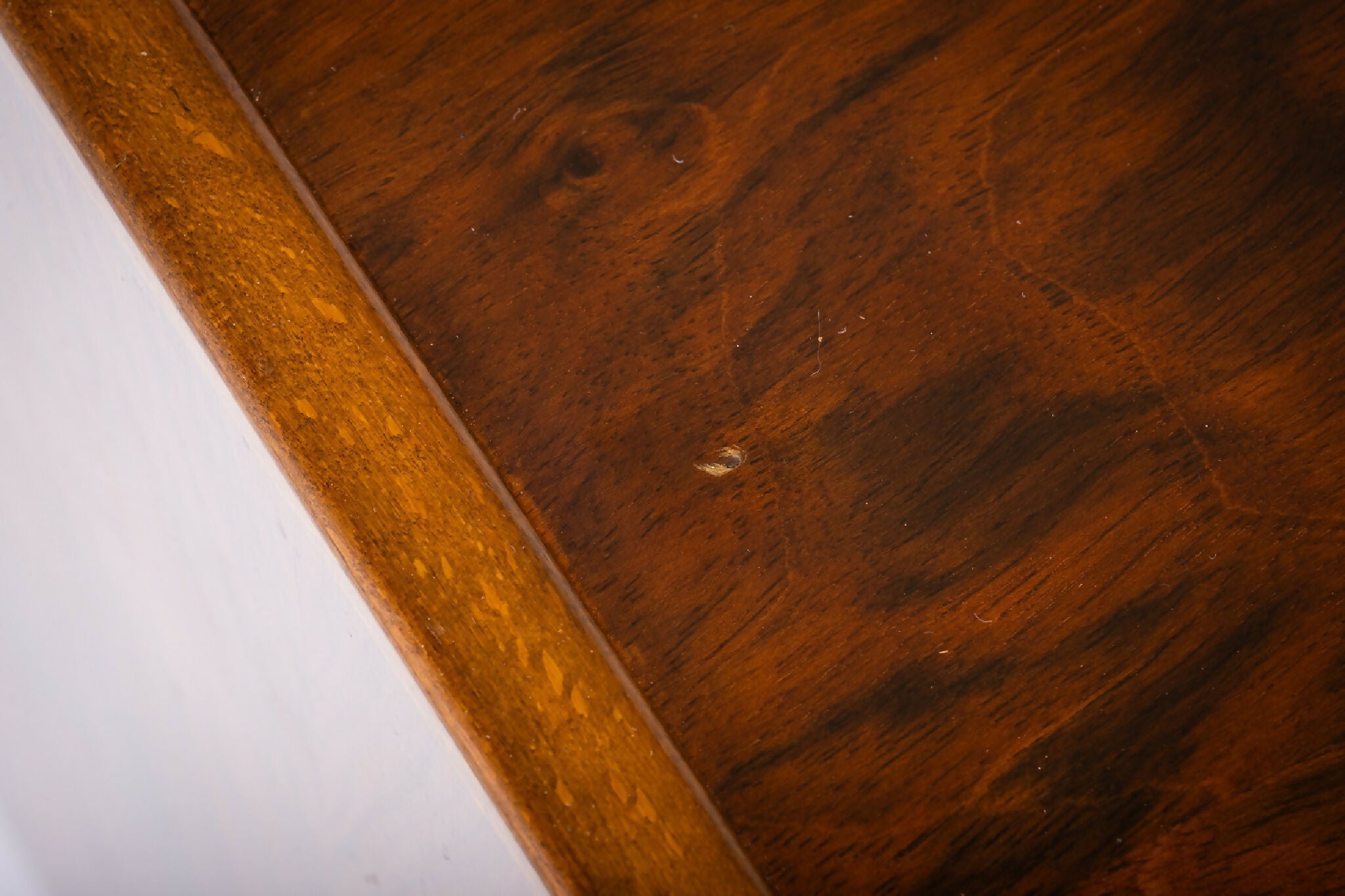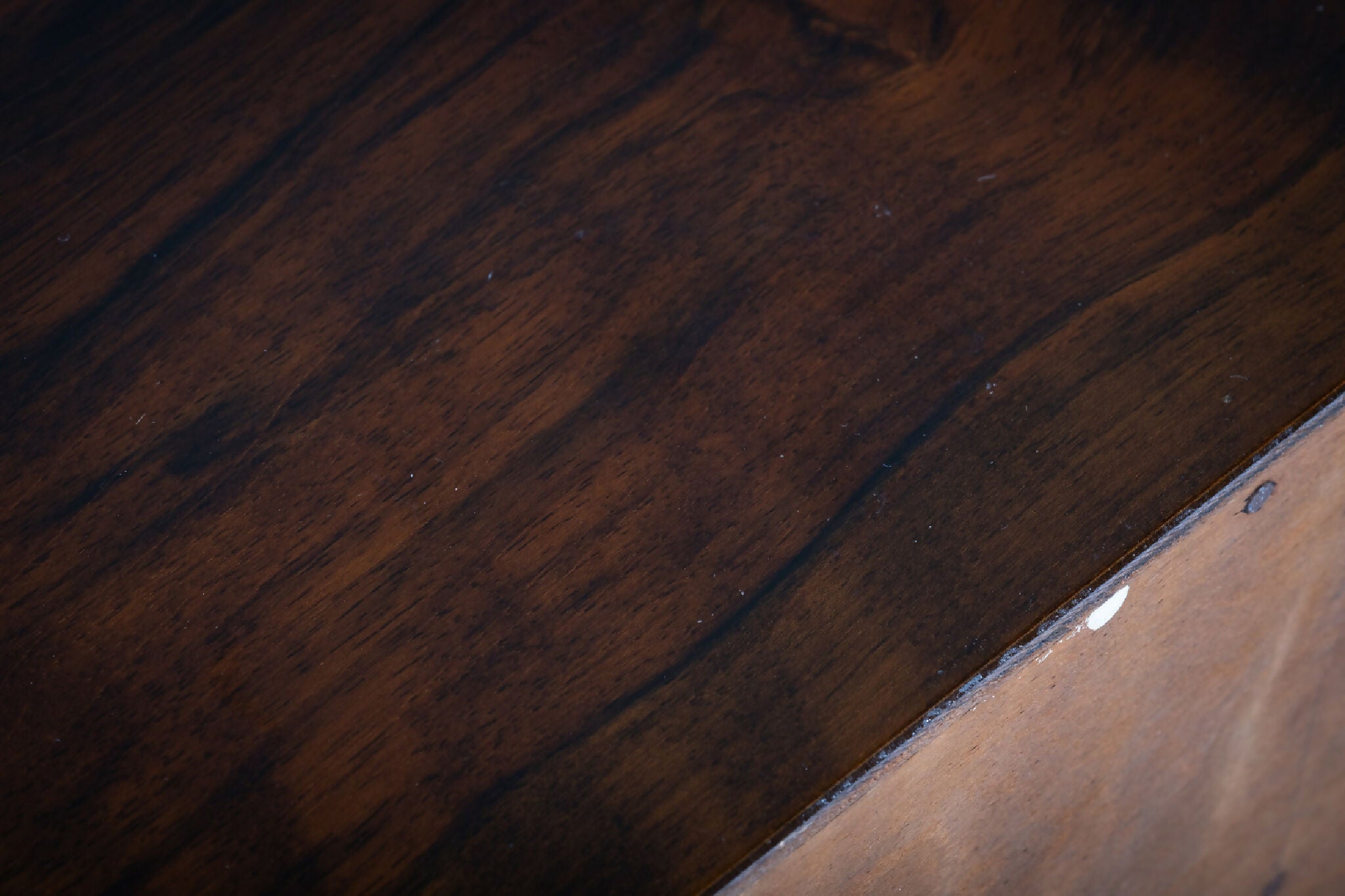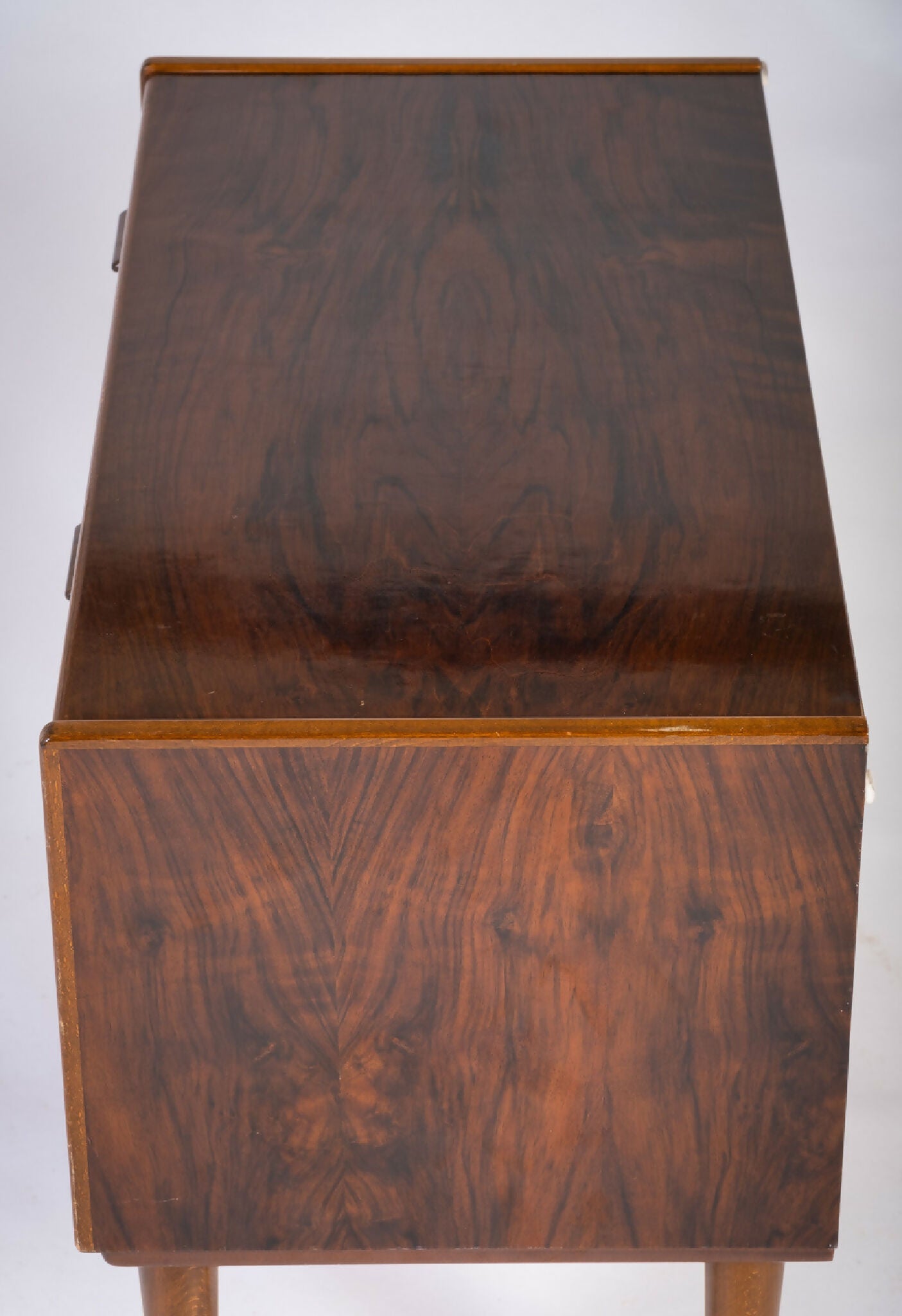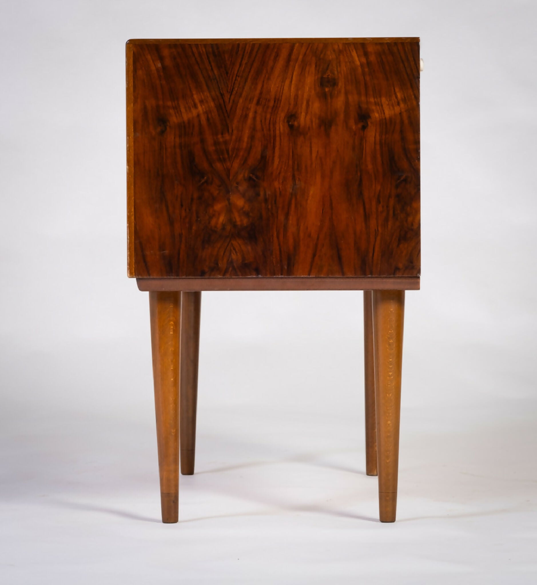 Klassisk kommode udført i valnød, fremstillet i Danmark i 1960’erne. Møblet har tre rummelige skuffer og et enkelt, elegant formsprog, hvor træets naturlige åretegninger giver varme og karakter. Designet afspejler den danske tilgang til funktionalitet og æstetik med fokus på proportioner og håndværk.