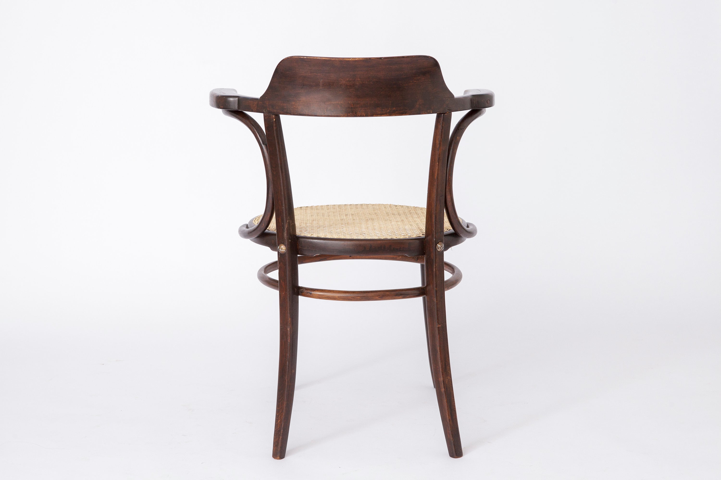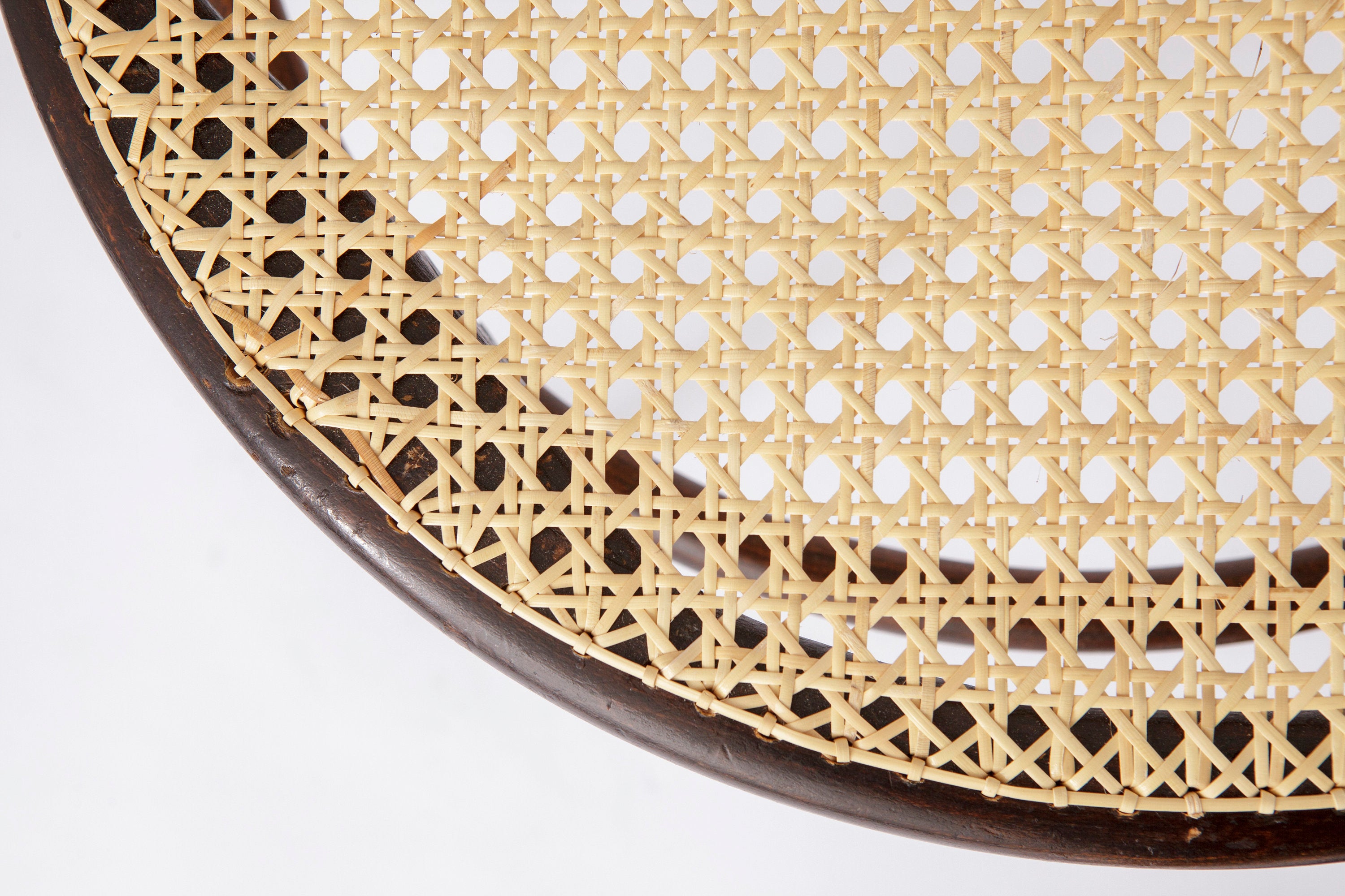 Formsproget kombinerer det lette udtryk fra bøjettræ med det luftige flet, hvilket gør stolen velegnet både som skrivebordsstol, spisestol eller som dekorativ accent i moderne indretninger. Et bæredygtigt vintagevalg med tydelig historisk referenceramme.