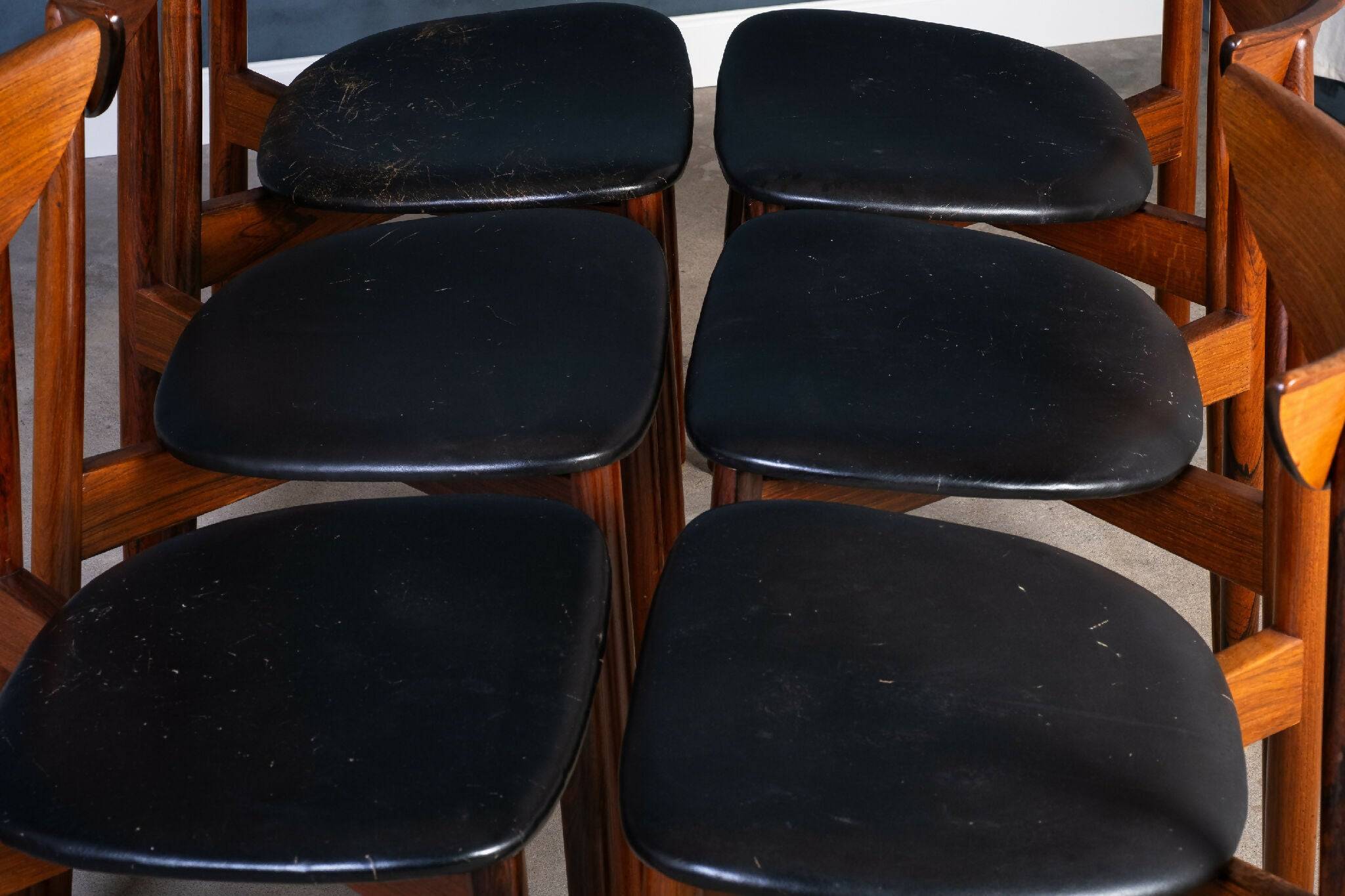 Stolene fremstår i fremragende vintage stand med minimale brugsspor og er bevaret i nær original tilstand. Et sæt på seks, der forener klassisk dansk snedkerkvalitet med tidløs æstetik – et oplagt valg til både moderne og klassiske interiører. Et bæredygtigt valg for den kvalitetsbevidste samler.
