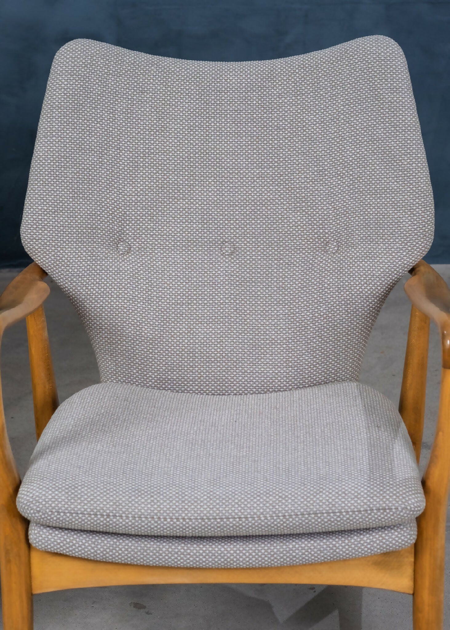 Stolene er i fremragende vintage stand. De blev ombetrukket i kvalitetsstof for under fem år siden og har kun været let anvendt i et ikke-rygerhjem.