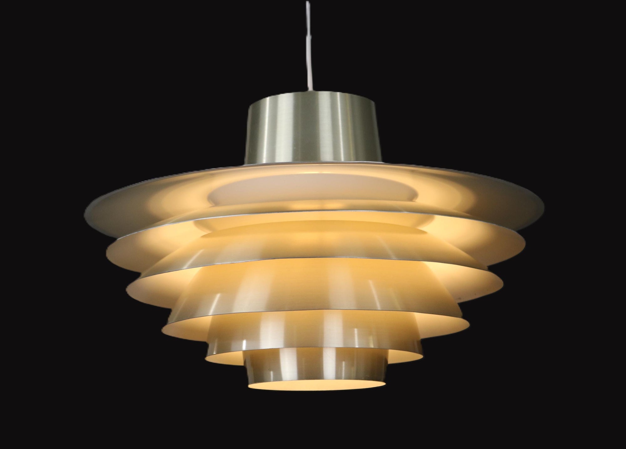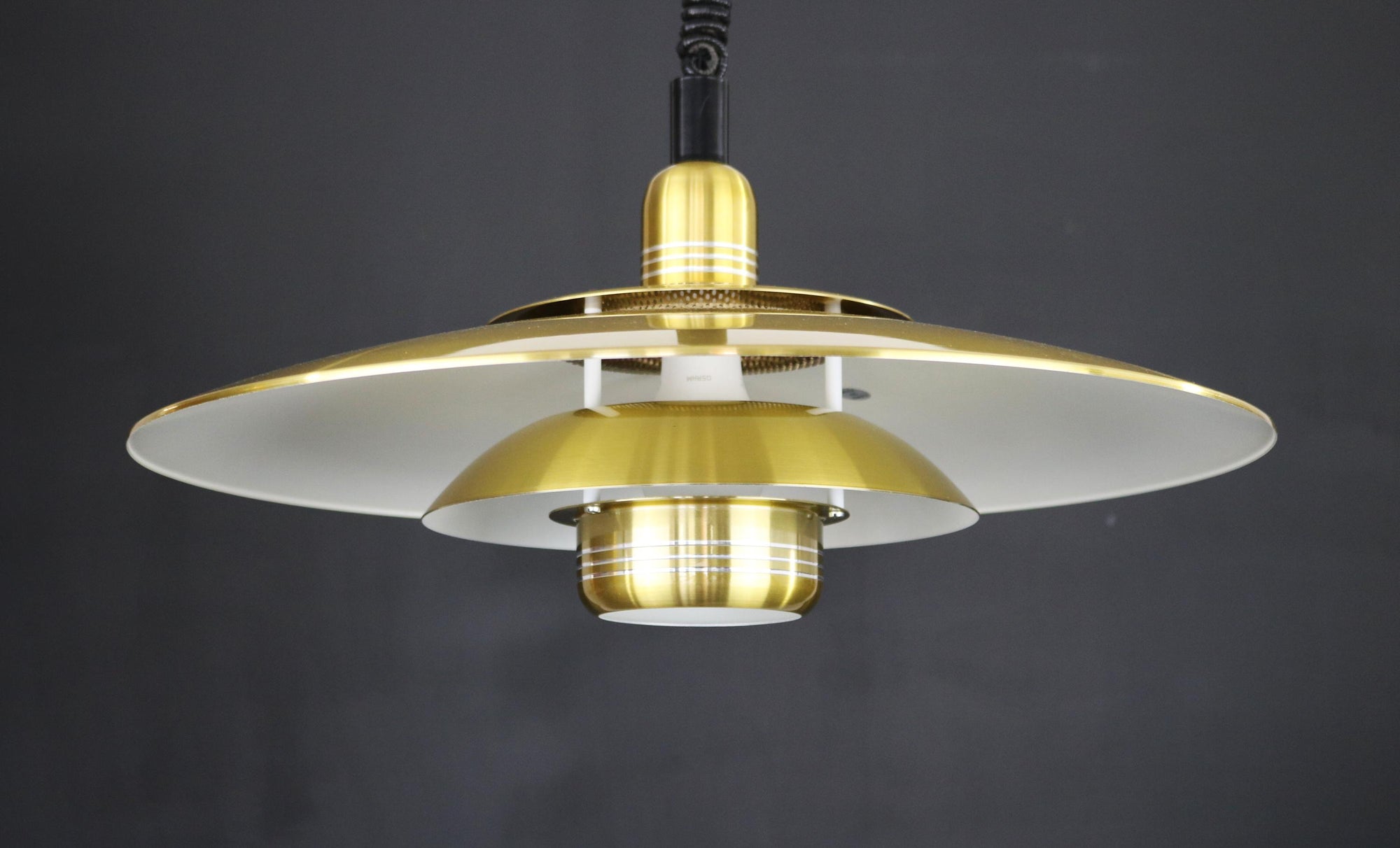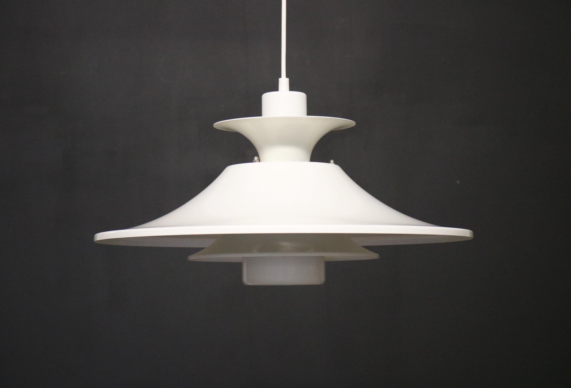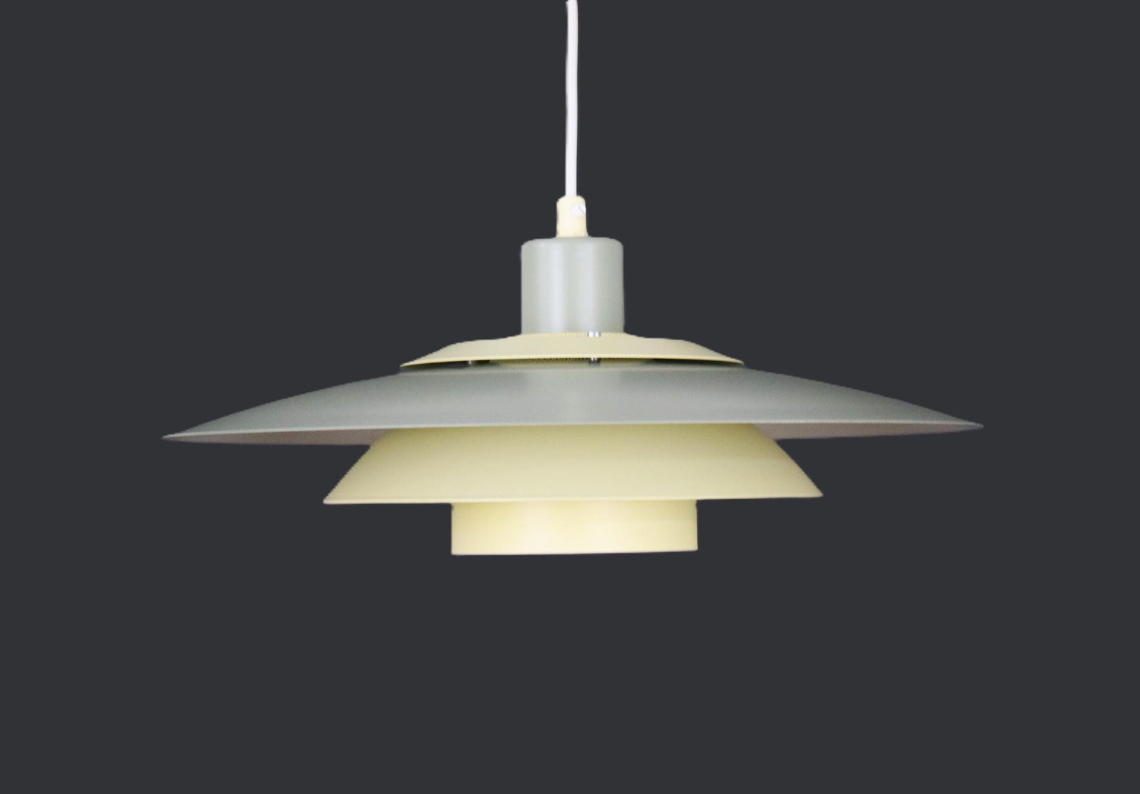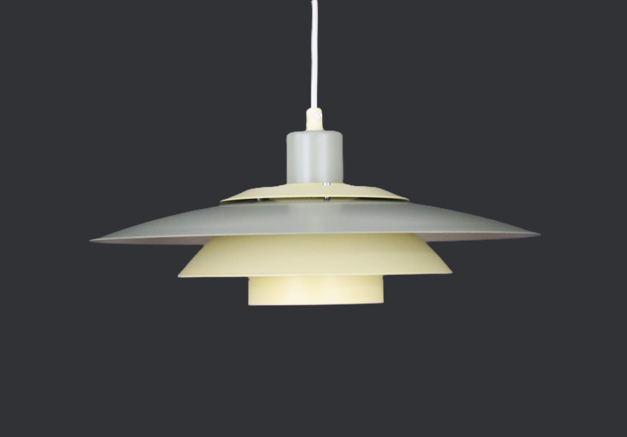 Smuk dansk vintage-pendel med opalglas og en mørkegrøn lakeret aluminiumsskærm. En XL-retrolampe af høj kvalitet fra 1980'erne, der giver et elegant og diffust lys.