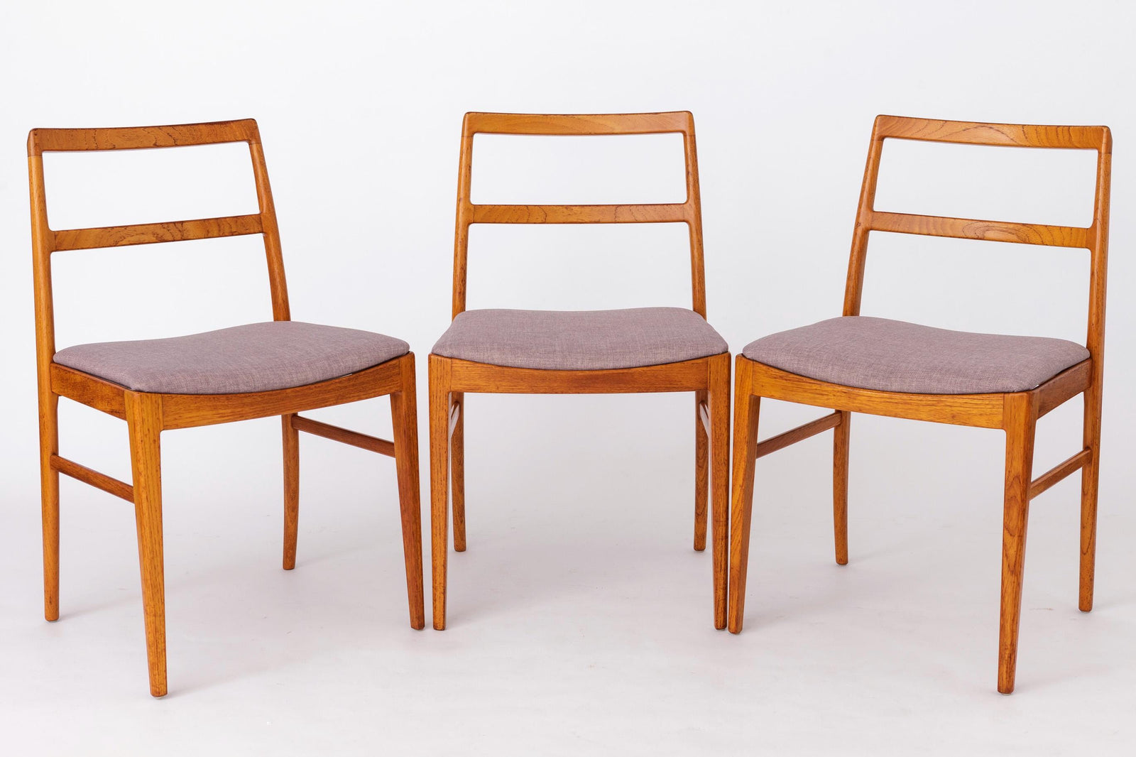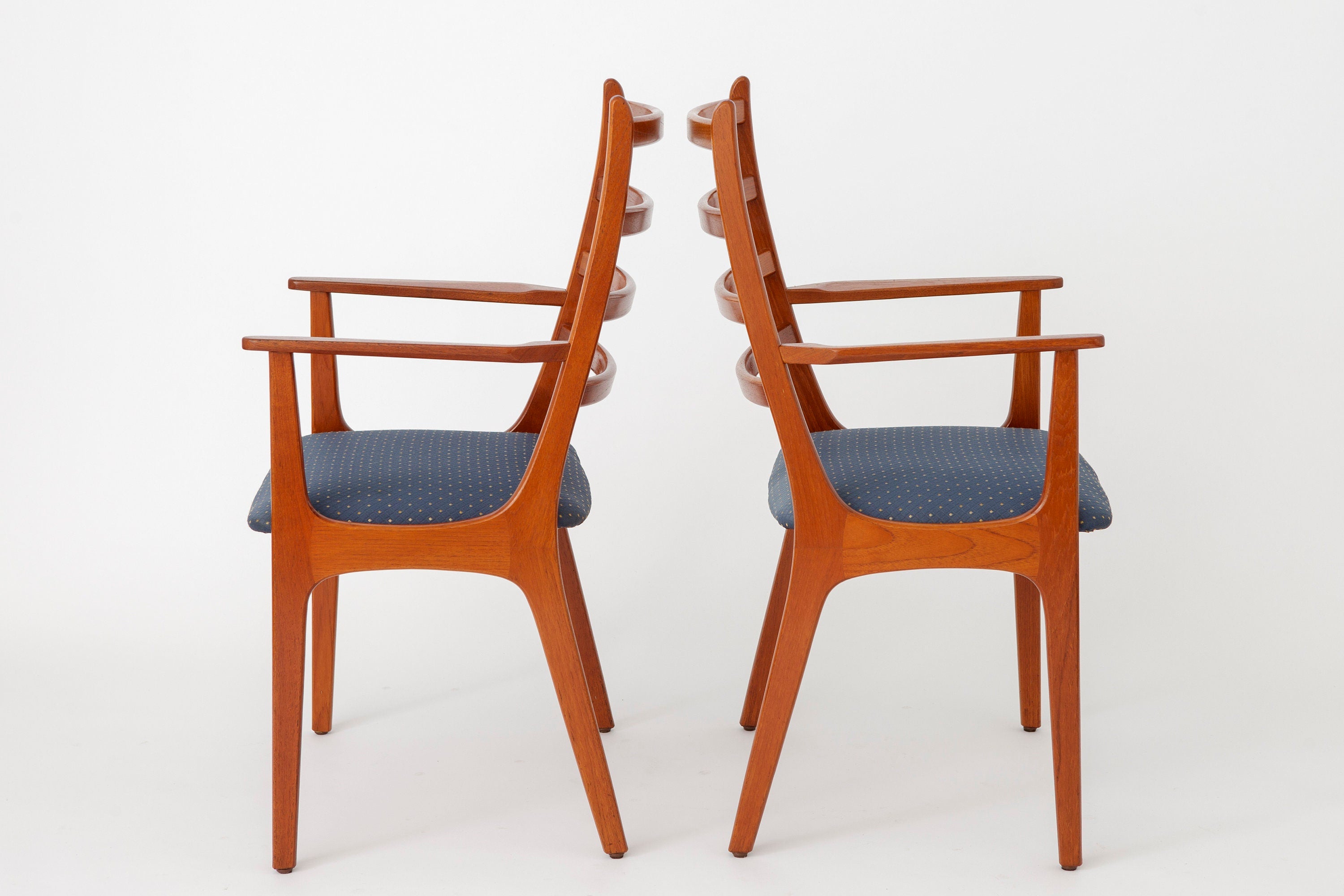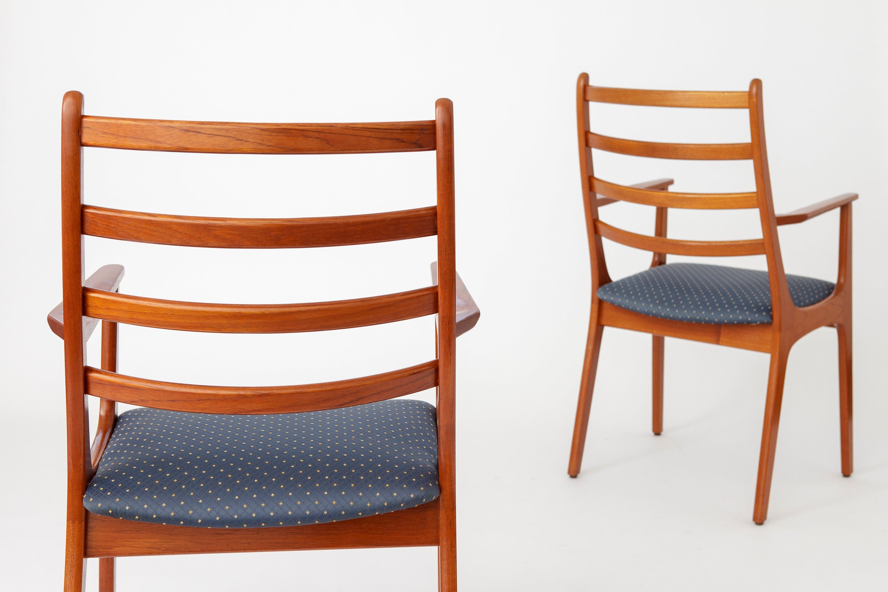 Elegant sæt af to teakstole produceret af KS Møbler i Danmark i 1960’erne. Stolene er udført i massivt teaktræ med originale sædepolstringer og fremstår i meget fin vintage stand uden revner eller reparationer.