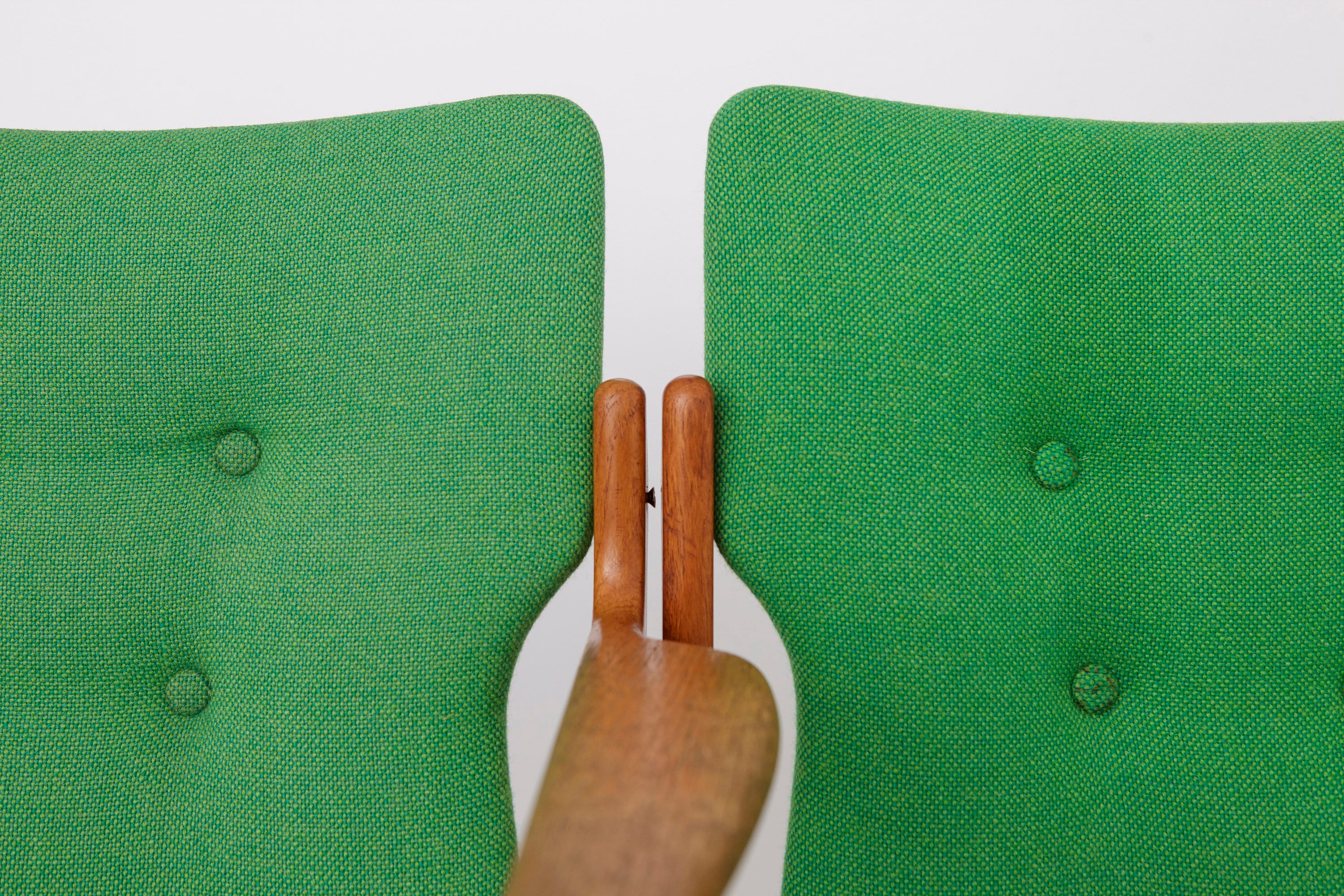 Klassisk sæt af fire teak armstole produceret af Vamdrup Stolefabrik i Danmark i 1960’erne. Stolene er udført i massivt teaktræ med originale tekstilpolstringer og fremstår i meget fin vintage stand med kun lette brugsspor.