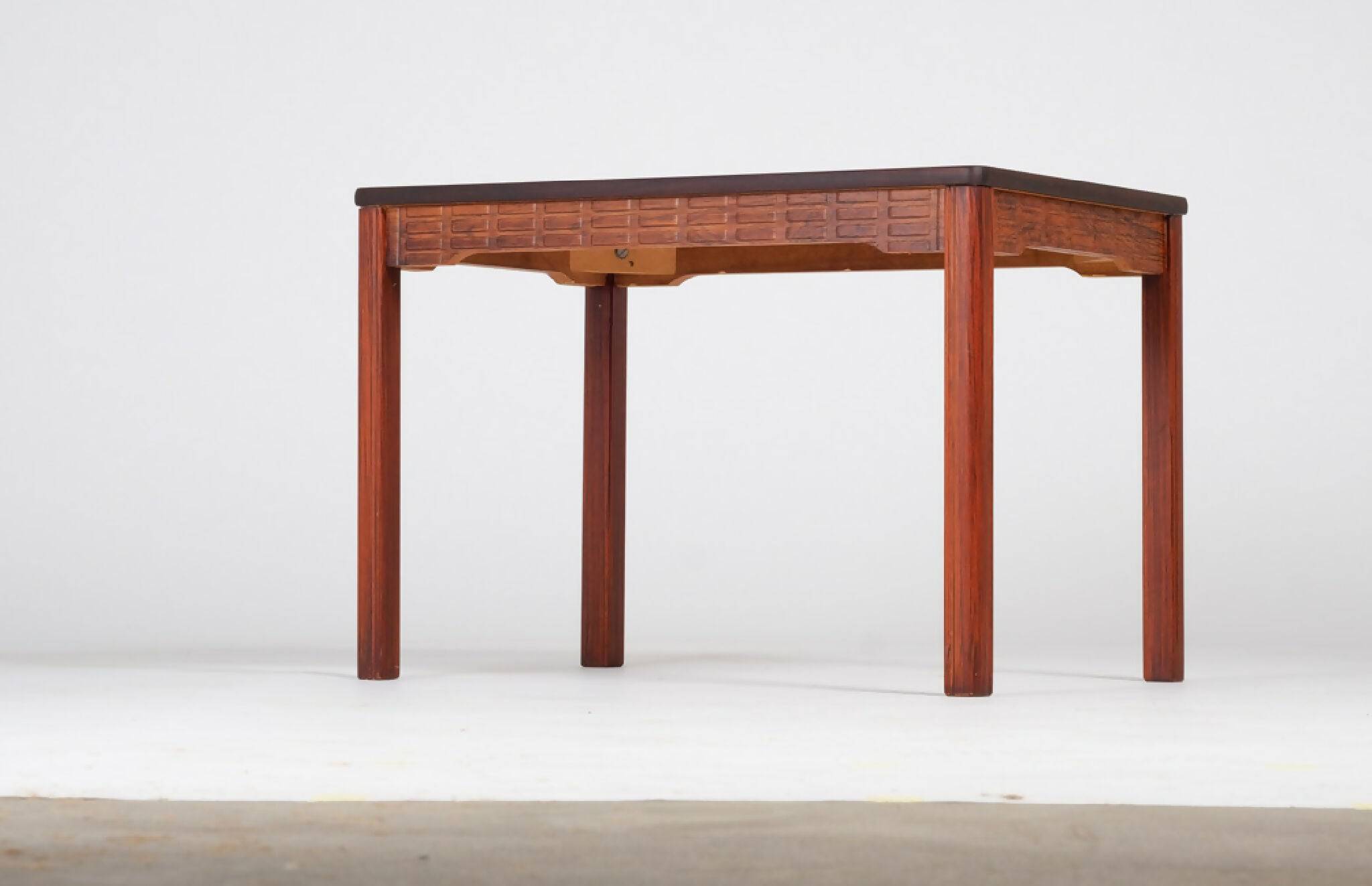 Sidebord udført i palisander, dansk design fra 1960’erne. Bordet er kendetegnet ved en markant og smuk årestruktur samt præcise detaljer i konstruktionen, som afspejler et højt håndværksniveau. Formsproget er enkelt og funktionelt og gør bordet anvendeligt både som sidebord og som lille sofabord.
