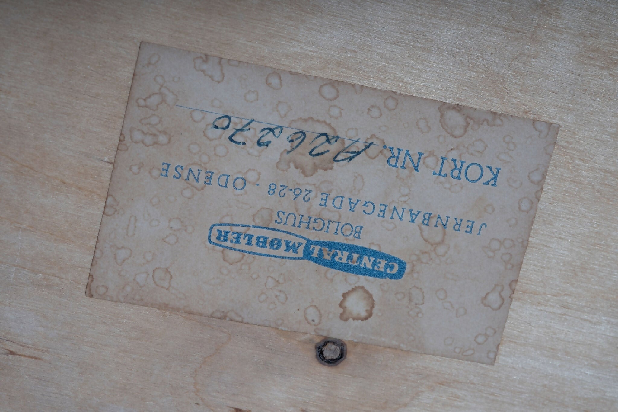 Fremstår i meget fin vintage stand med naturlig patina. Møblet er nænsomt rengjort, men ikke restaureret, så køberen selv kan vælge eventuel opfriskning. En dansk snedker kan stå for professionelle reparationer efter ønske. Et alsidigt og tidløst møbel, der både kan anvendes som fodskammel, ekstra siddeplads eller dekorativ detalje i indretningen.