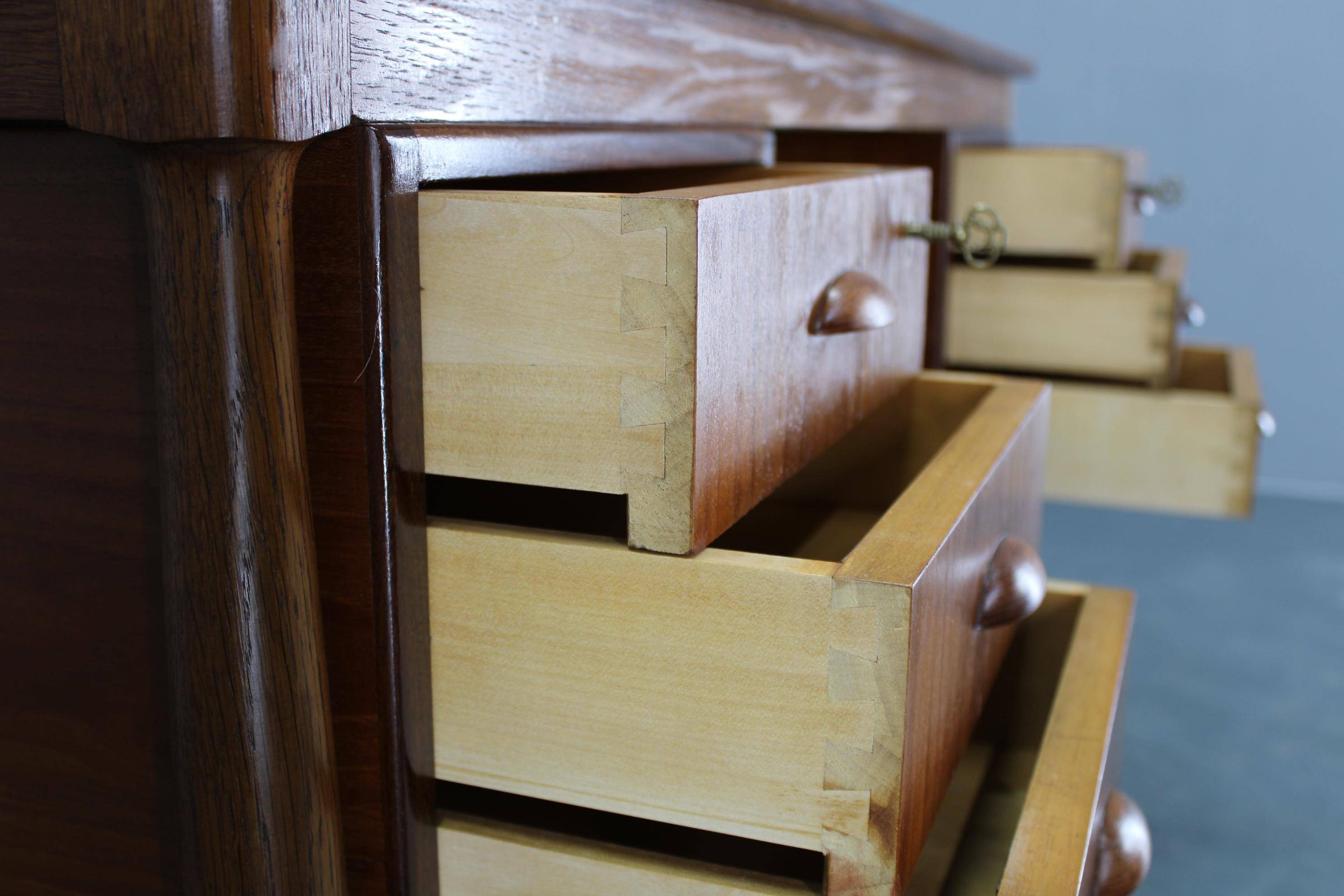 Bordet er nænsomt restaureret og fremstår i meget fin vintage stand med kun lette spor af brug. Et møbel, der forener funktionalitet og æstetik, og som egner sig både til hjemmekontor og som et stilfuldt element i det moderne arbejdsmiljø.
