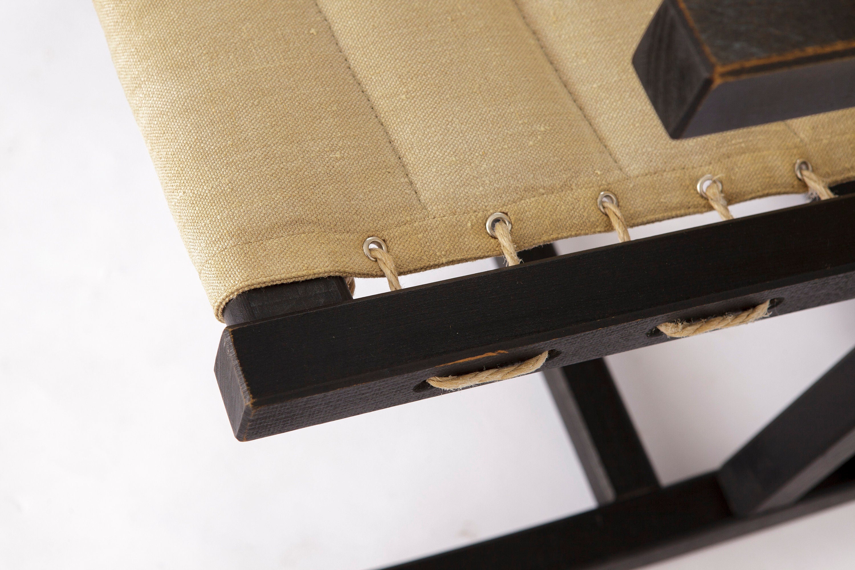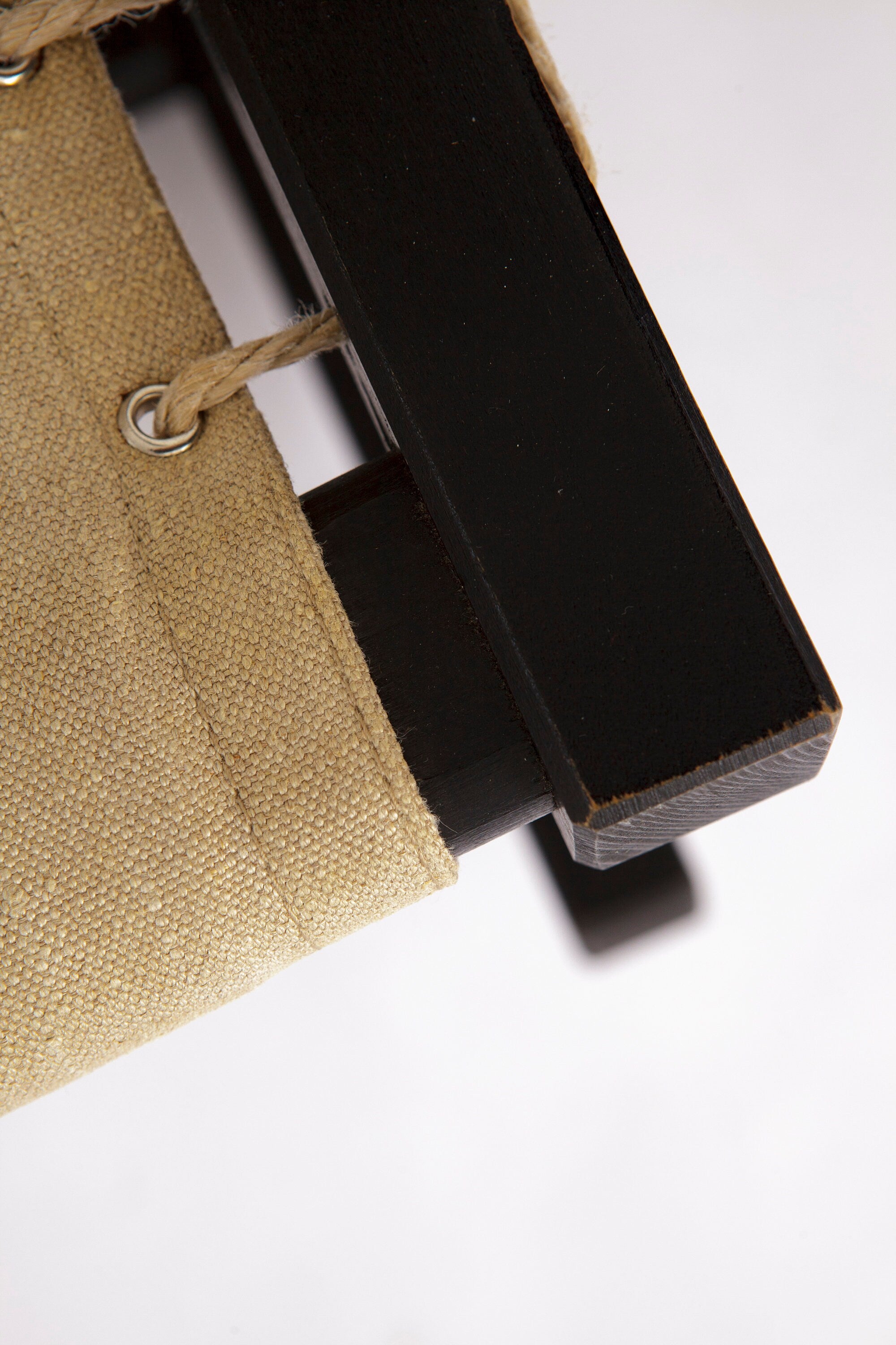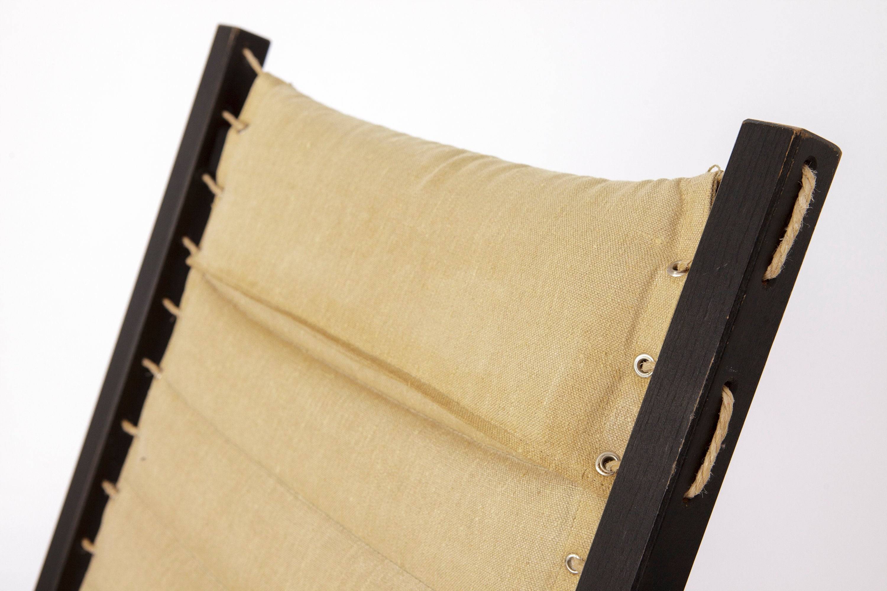 Elegant og minimalistisk gyngestol fremstillet af Casala i Tyskland i 1960’erne. Stolen har et sortlakeret stel i bøgetræ og et betræk i beige bomuld, som er professionelt renset af møbelrenseri. Et smukt eksempel på tysk modernistisk design, hvor enkelhed og funktion går op i en harmonisk helhed.