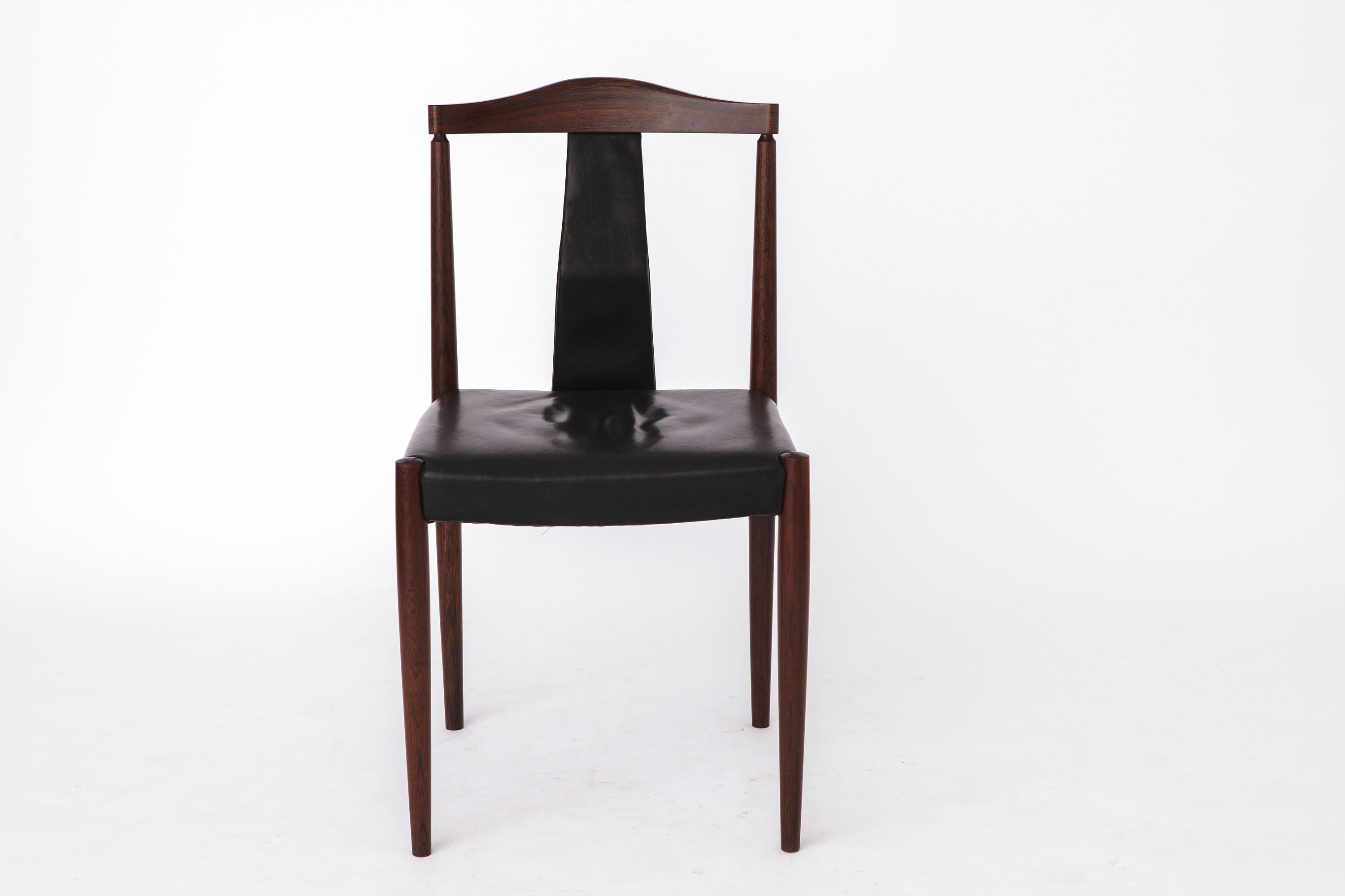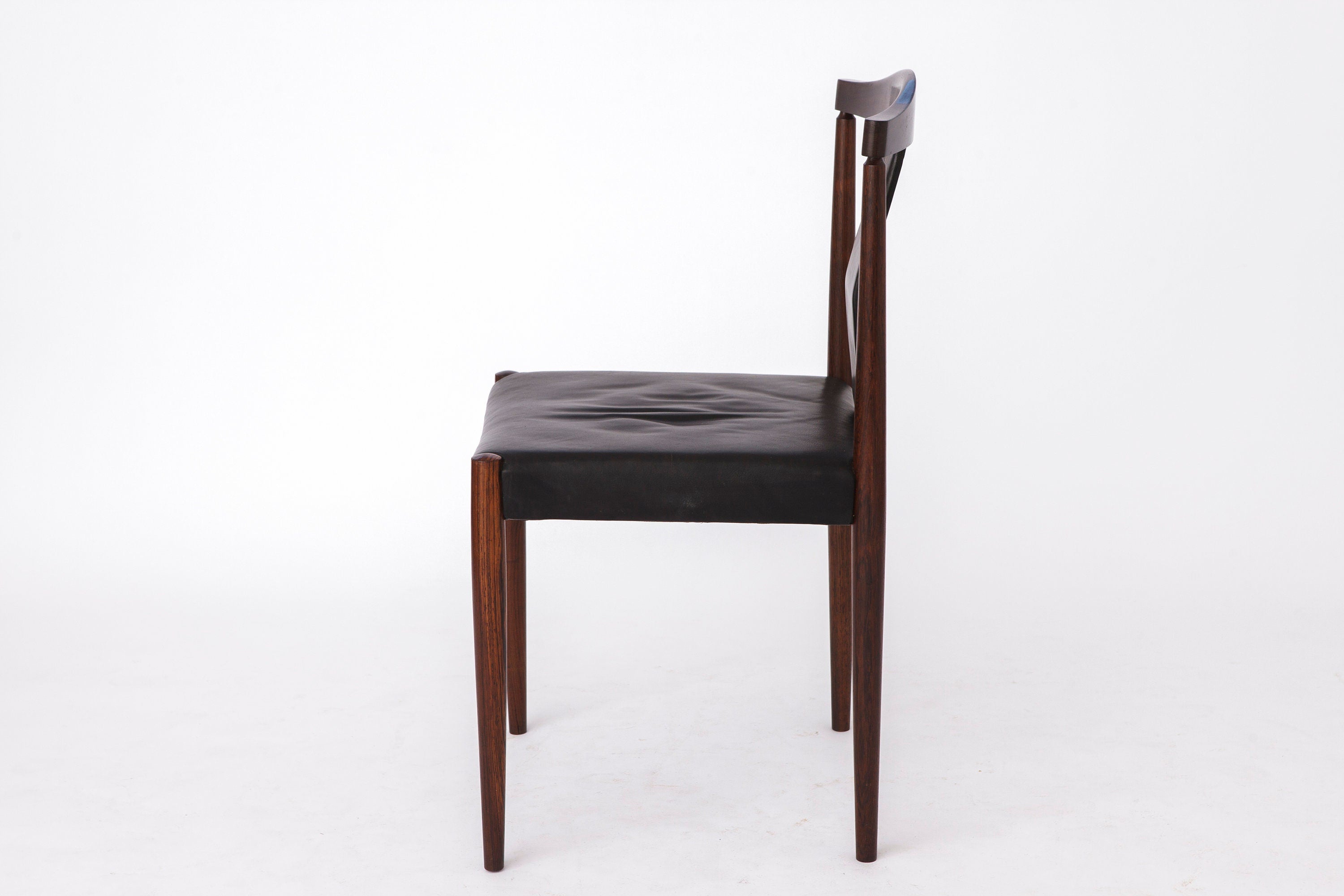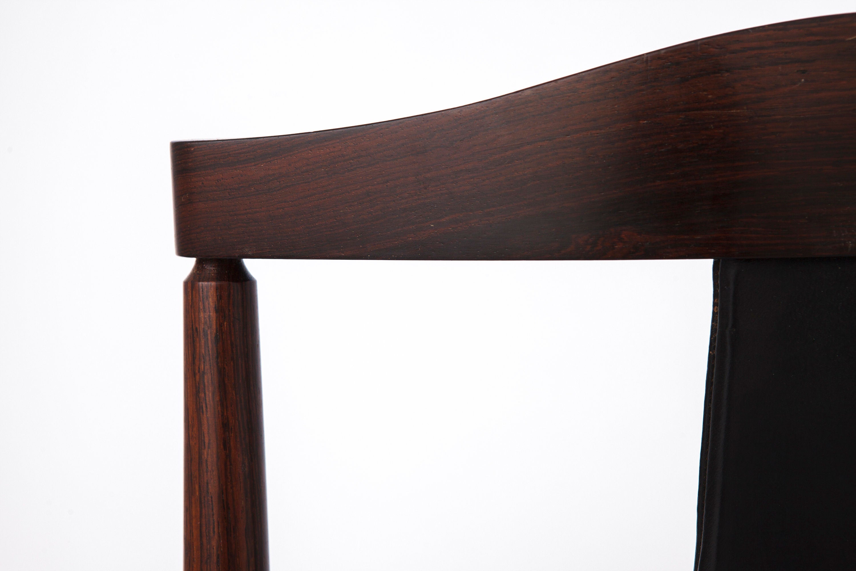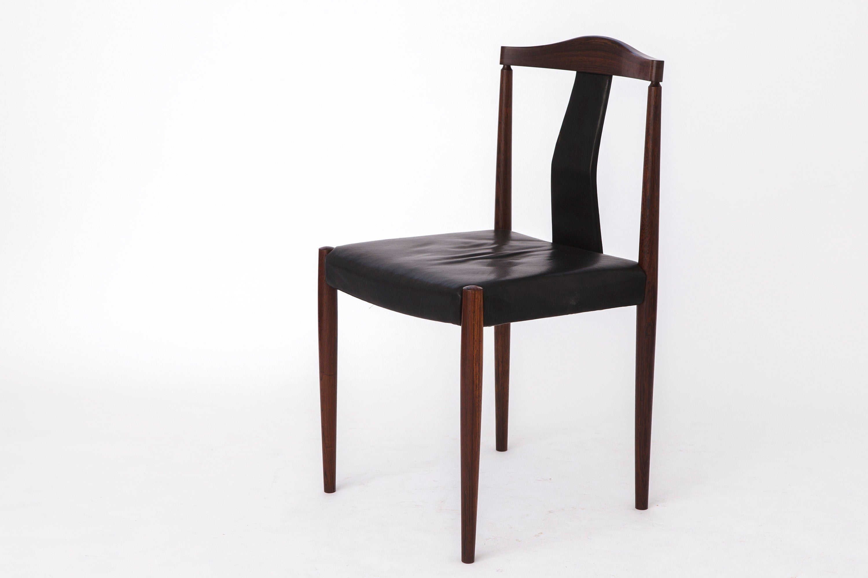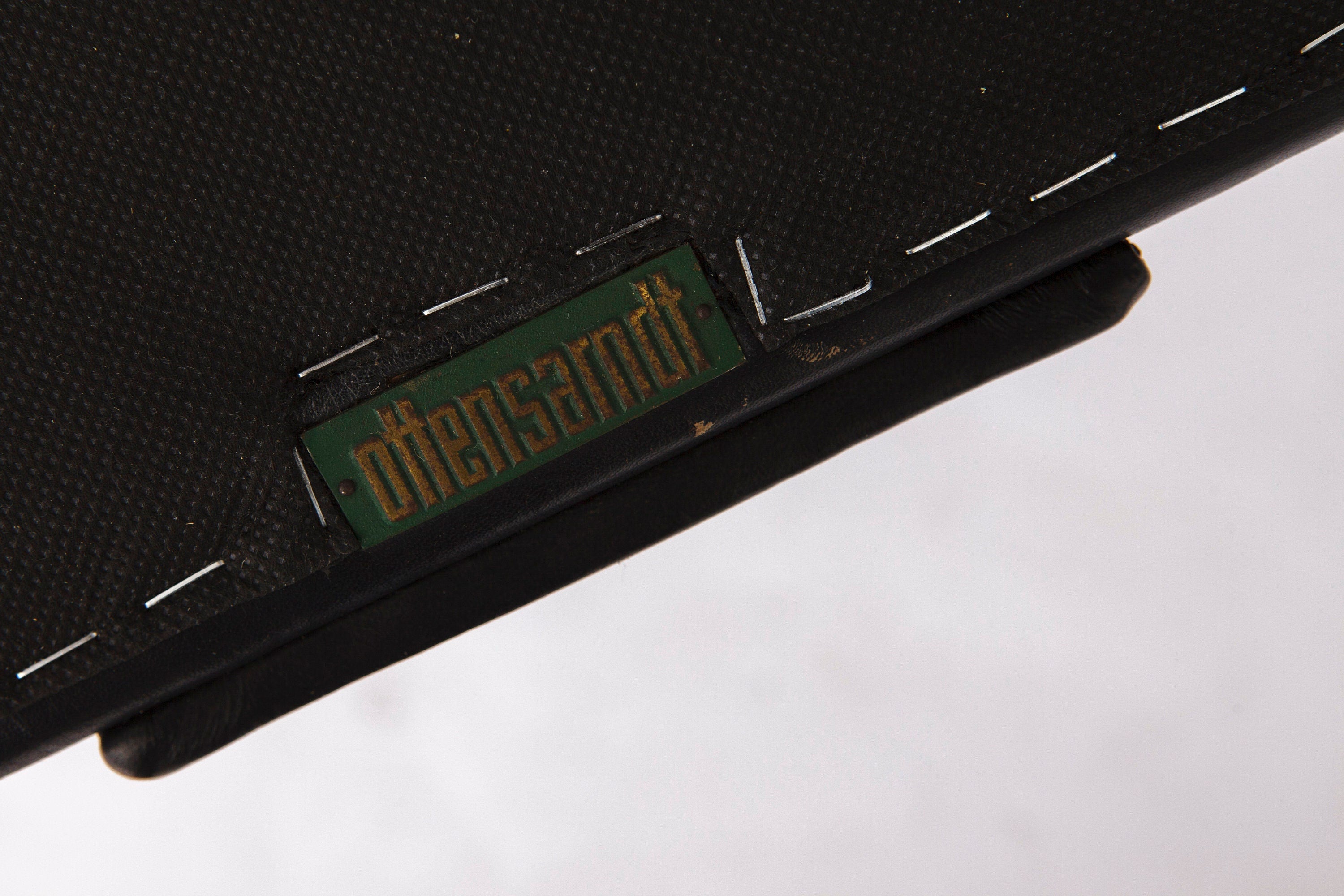 Smuk vintage skrivebordsstol fra 1960’erne, produceret af den tyske møbelfabrikant Ottensarndt. Stolen er udført i massivt palisandertræ med sæde og ryg betrukket i ægte sort læder. Kombinationen af eksklusive materialer og tidløst design gør den ideel til både kontor, mødelokale eller som en markant enkeltstående stol.