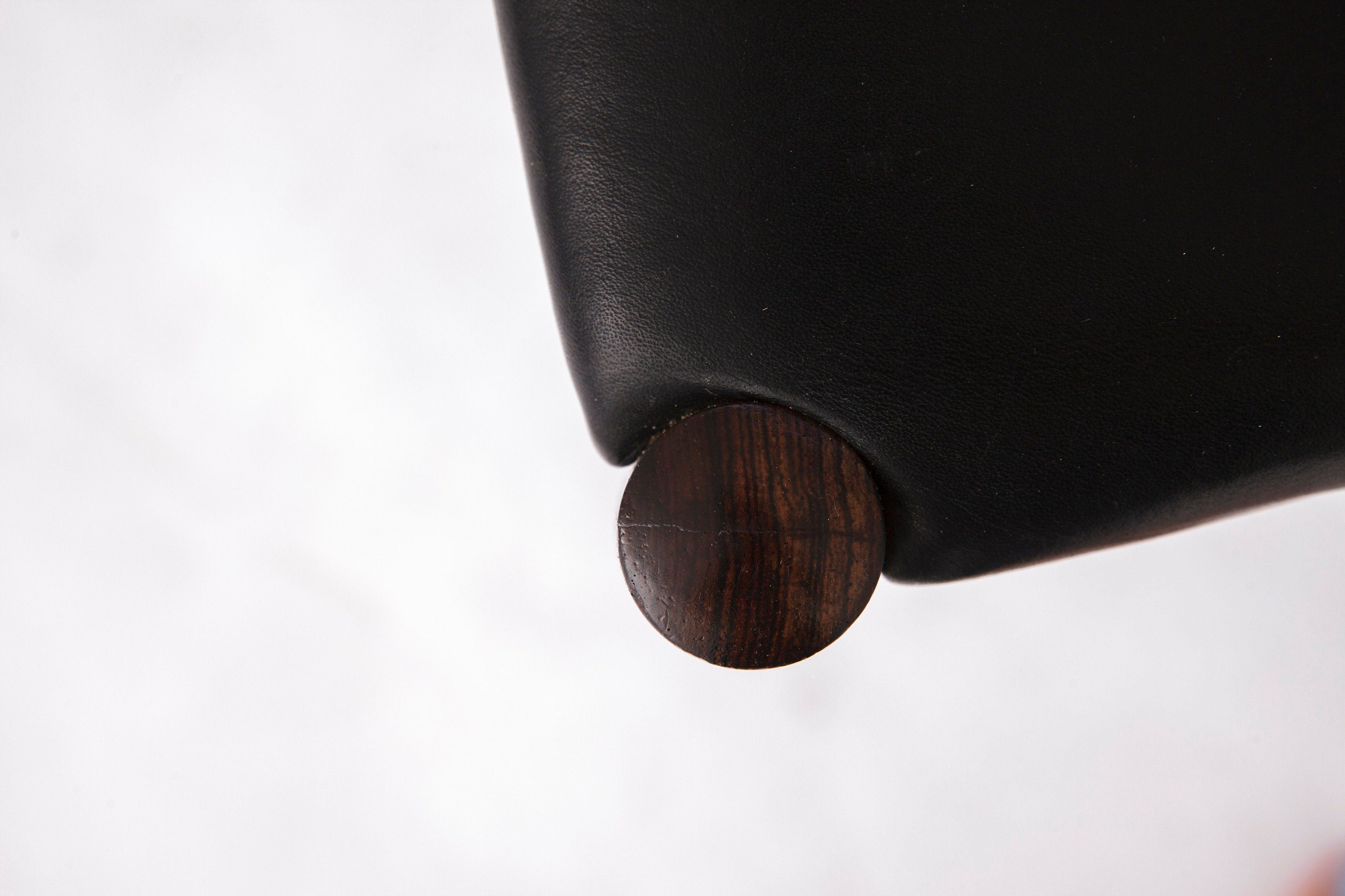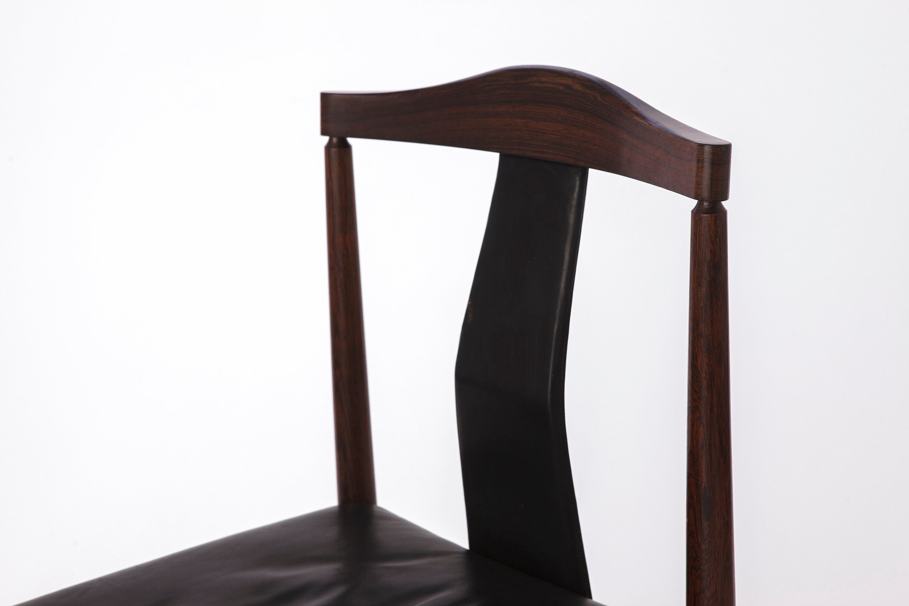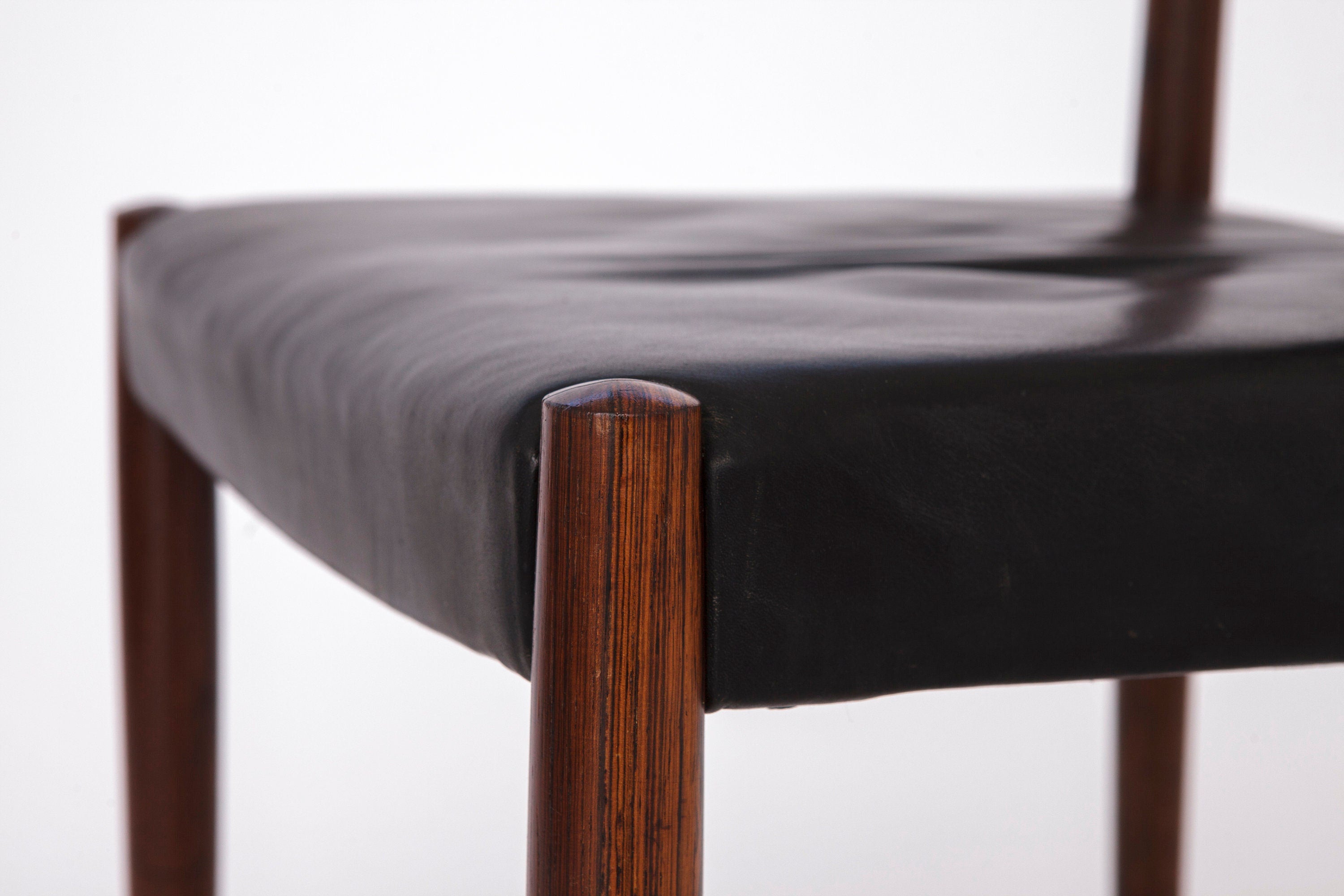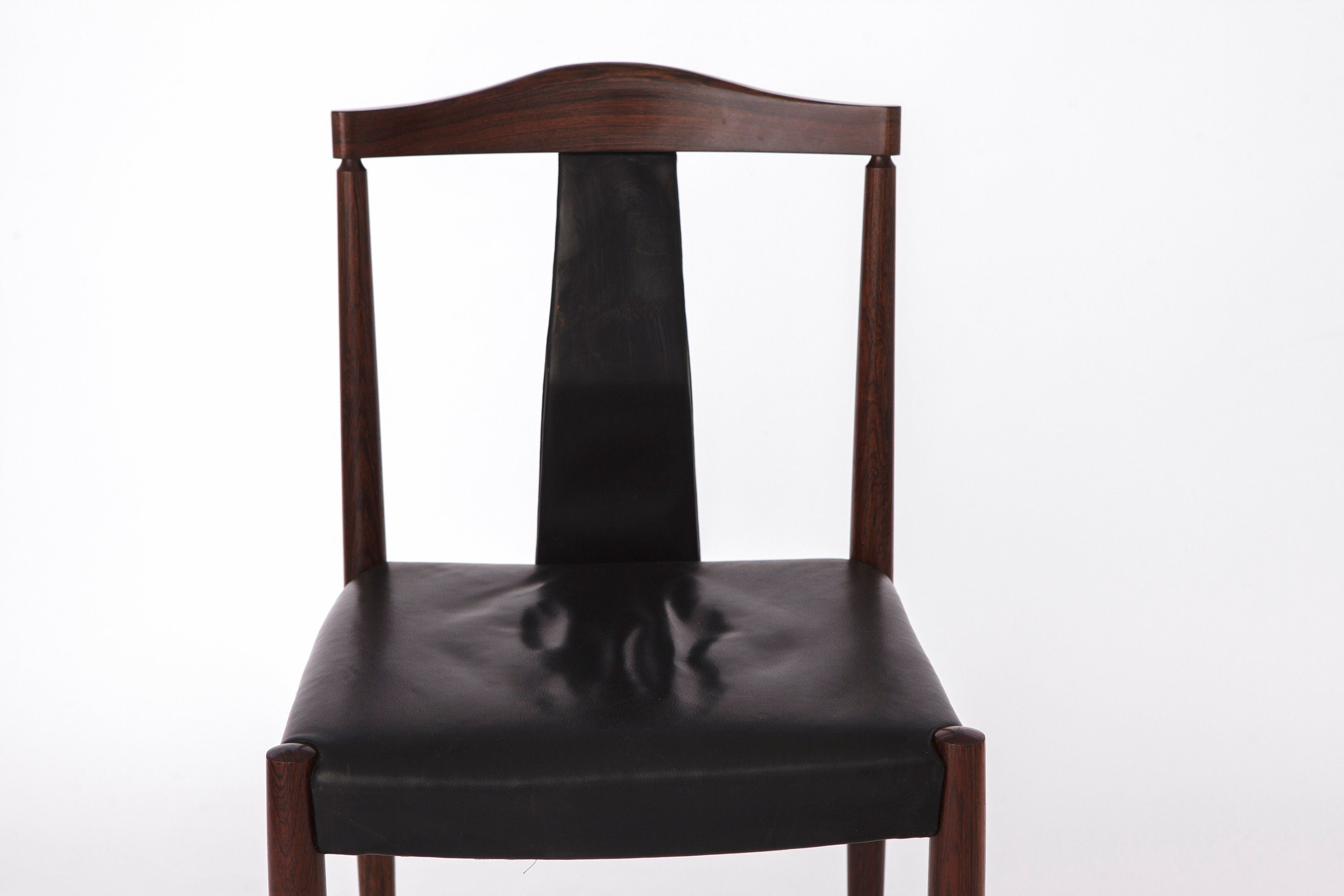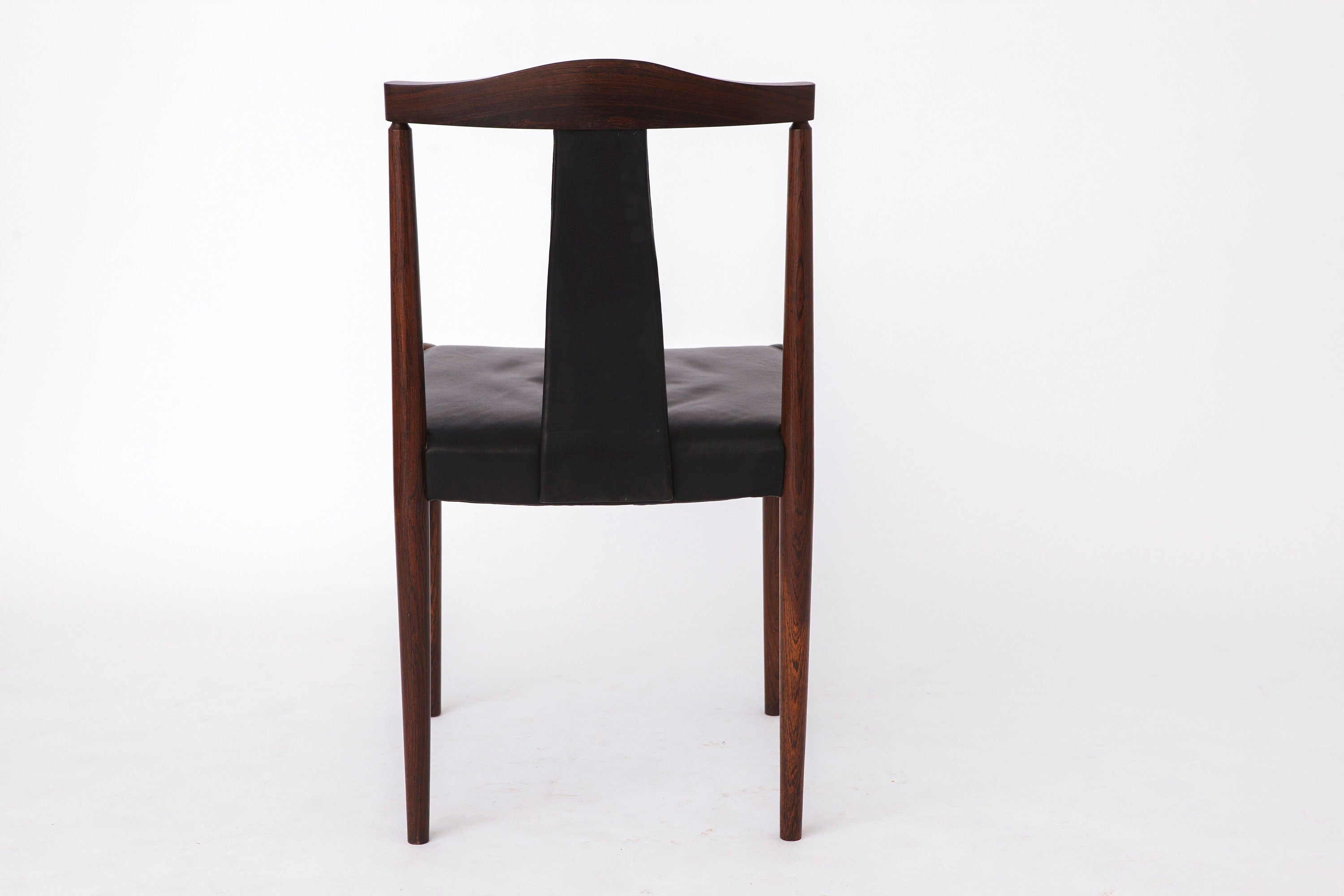 Smuk vintage skrivebordsstol fra 1960’erne, produceret af den tyske møbelfabrikant Ottensarndt. Stolen er udført i massivt palisandertræ med sæde og ryg betrukket i ægte sort læder. Kombinationen af eksklusive materialer og tidløst design gør den ideel til både kontor, mødelokale eller som en markant enkeltstående stol.