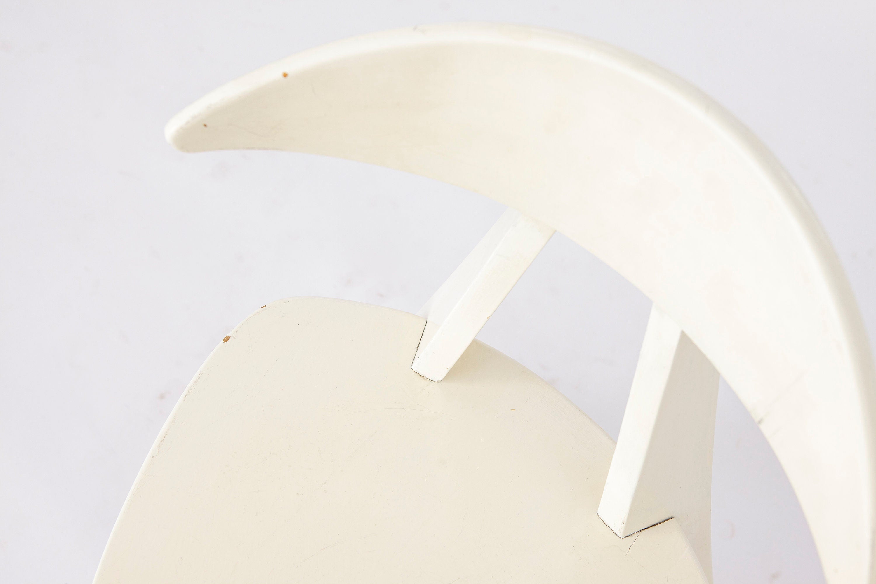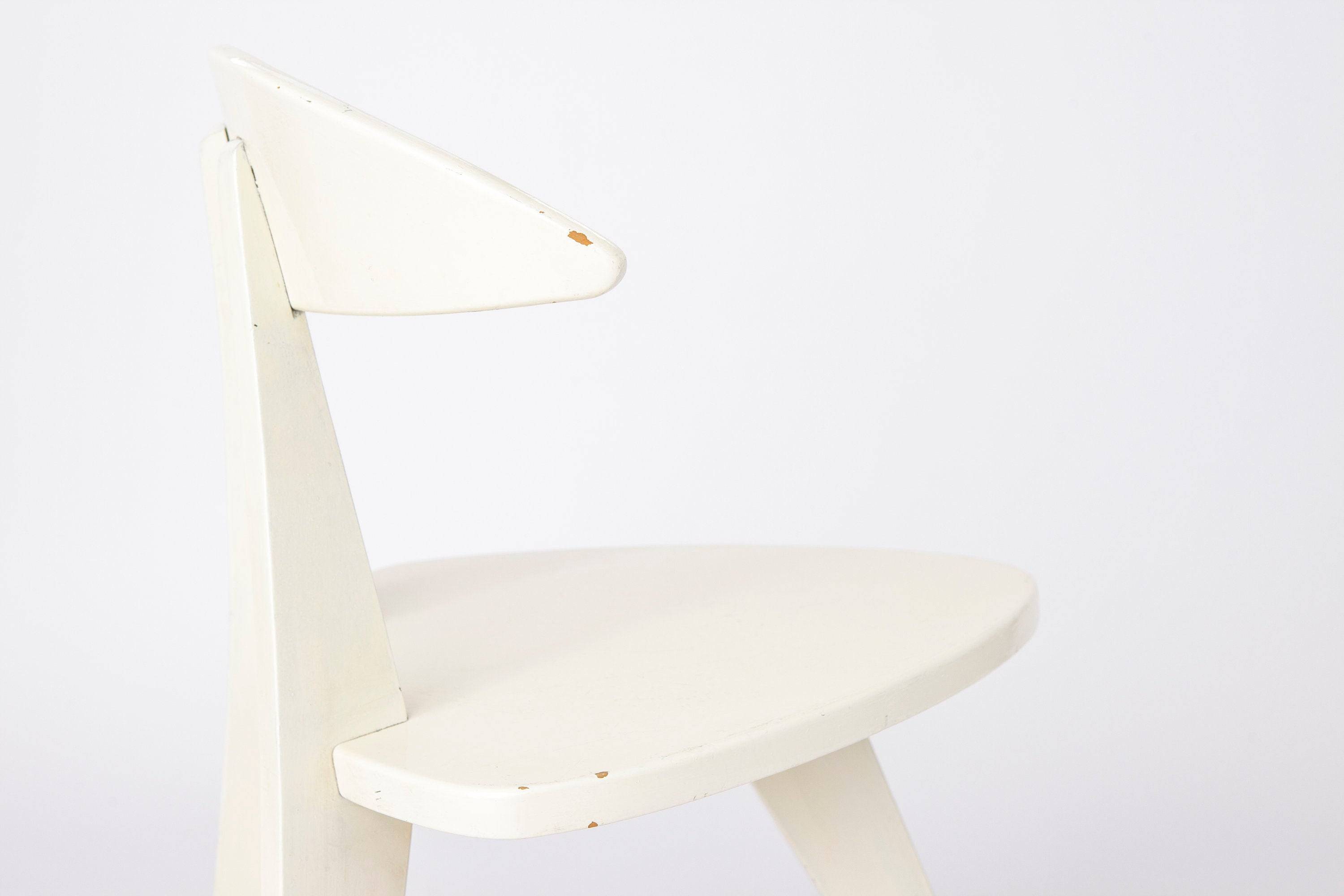 Model 350 børnestol designet af Walter Papst i 1954 og fremstillet af Wilkhahn i Tyskland. Udført i bøg og malet i hvid finish. Den trebenede konstruktion giver stolen et let og skulpturelt udtryk, samtidig med at den står stabilt og sikkert.
