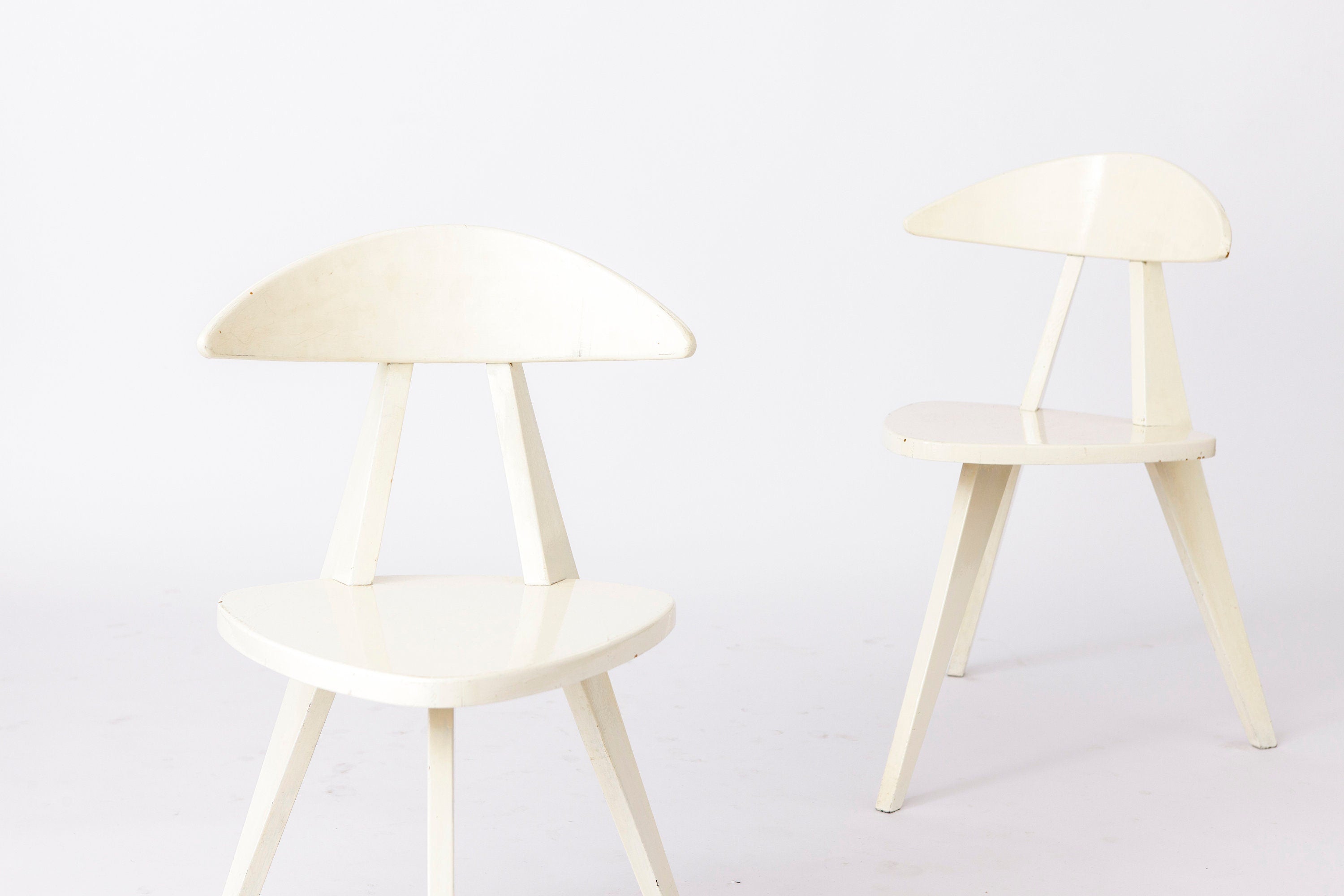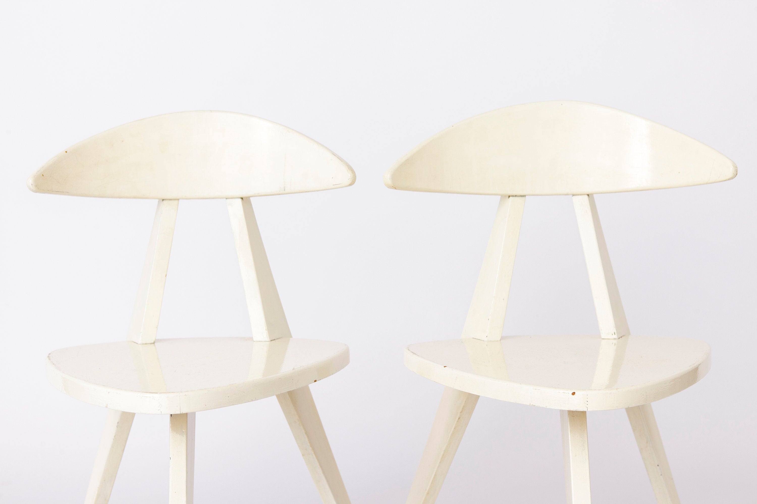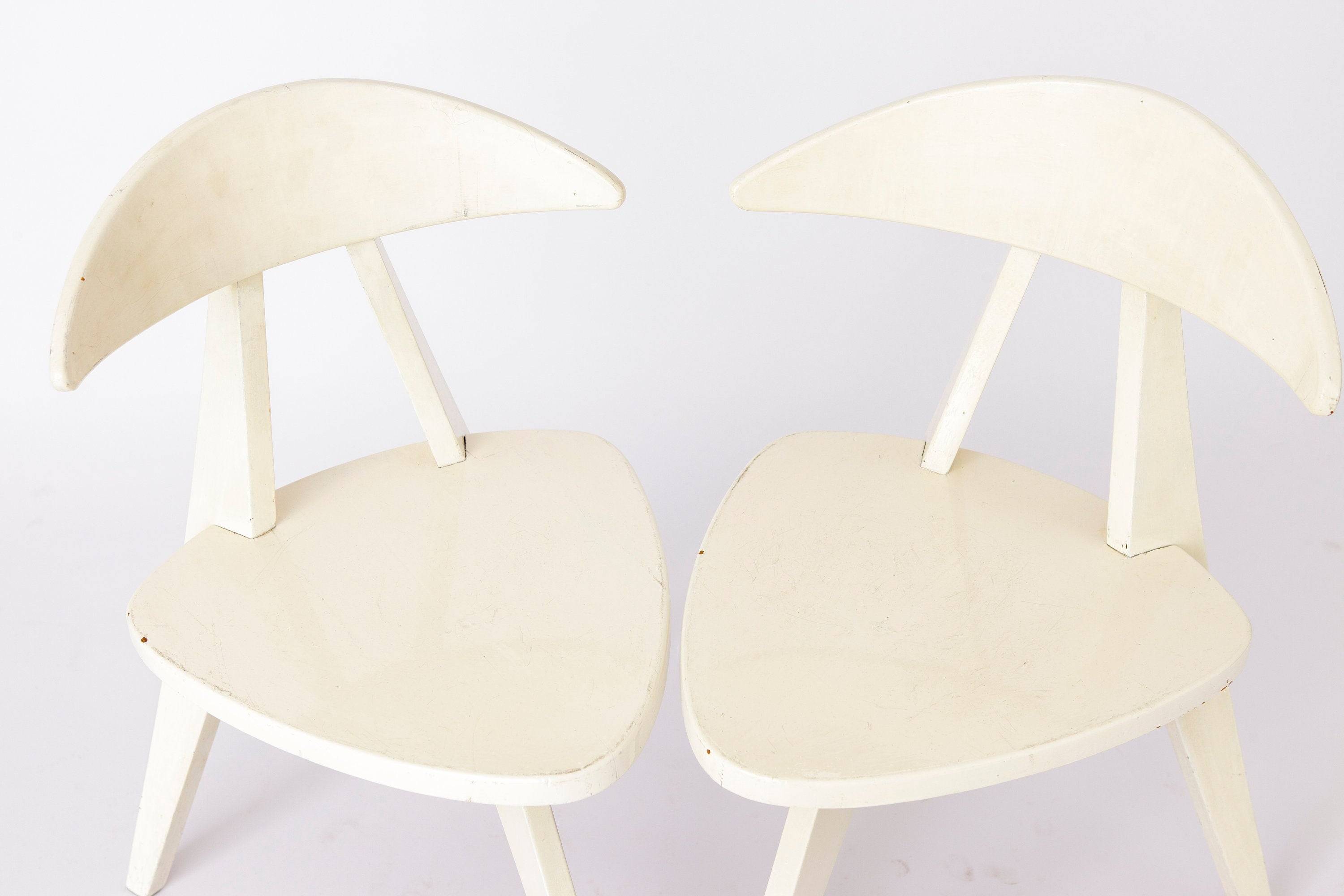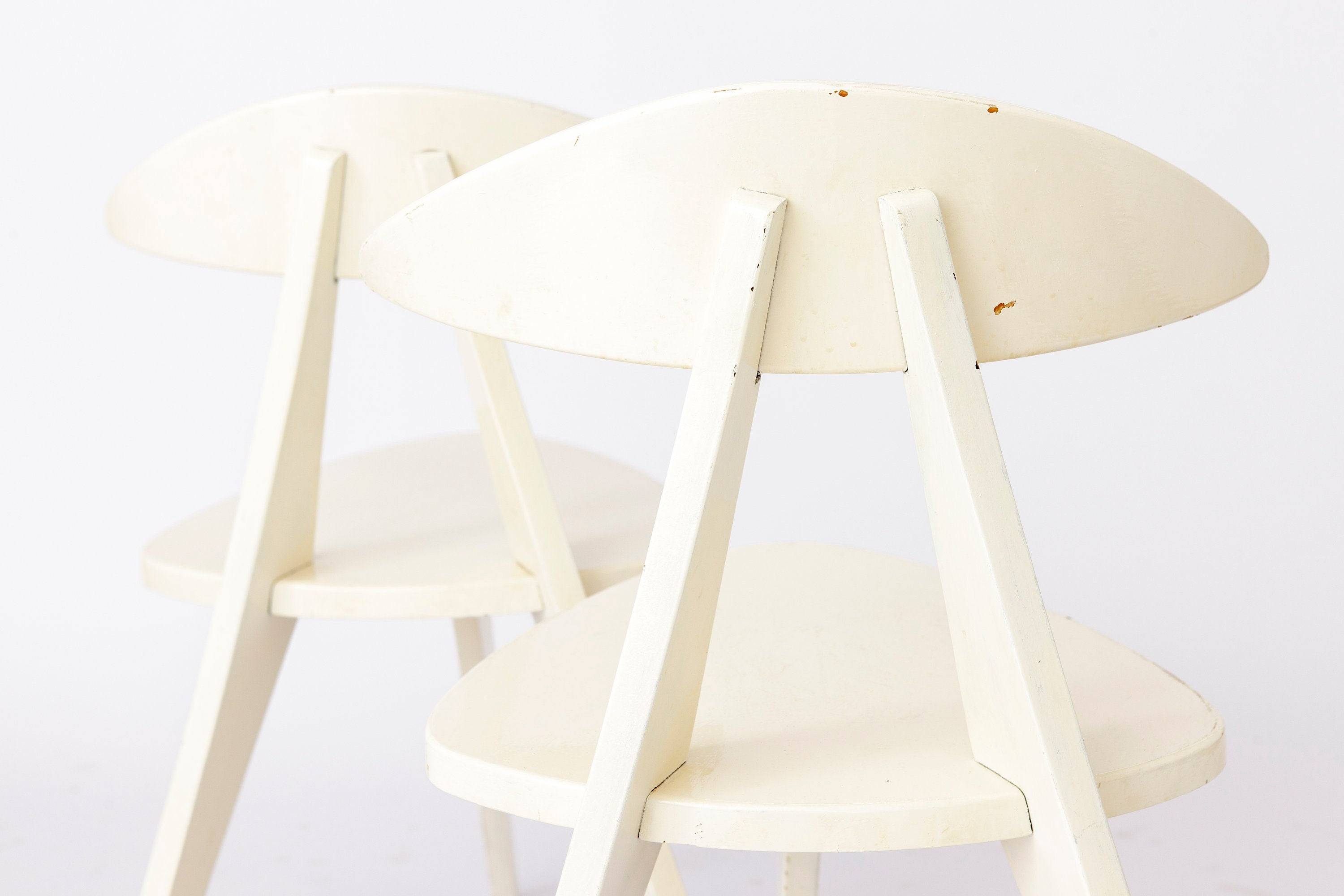 Model 350 børnestole designet af Walter Papst i 1954 og fremstillet af Wilkhahn i Tyskland. Stolene er udført i bøg og malet i hvid finish. Den karakteristiske trebenede konstruktion giver et let, skulpturelt udtryk og samtidig en stabil siddeoplevelse for børn.